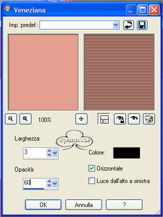 Effetti>Effetti di trama>veneziana, con questi settaggi: