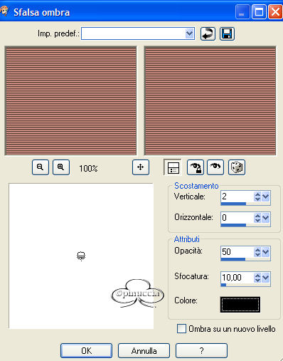 Effetti>Effetti 3D>Sfalsa ombra, con questi settaggi: