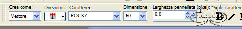 Aggiungi il tuo watermark e un eventuale testo. Scegli un font adatto. Io ho scelto il font Rocky, con queste impostazioni (colore di sfondo