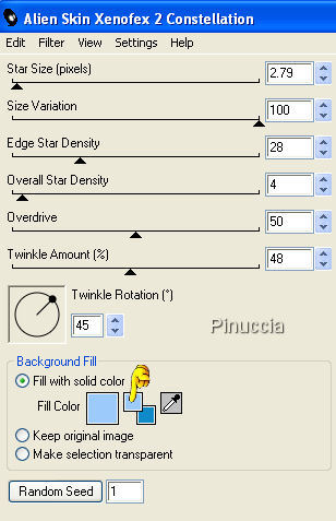 Ripeti l'Effetto Constellation, con gli stessi settaggi, ma cliccando una volta su Random Seed.