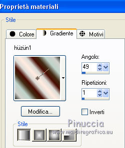 Passa il colore di primo piano a Gradiente e seleziona il gradiente huzun1, stile Lineare.