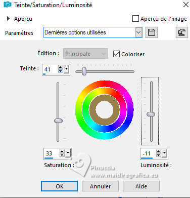 Réglage>Teinte et Saturation>Teinte/Saturation/Luminosité.