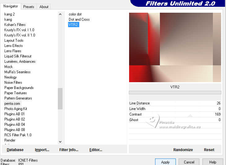 7. Effets>Modules Externes>Filters Unlimited 2.0 - Penta.com - VTR2, par défaut
