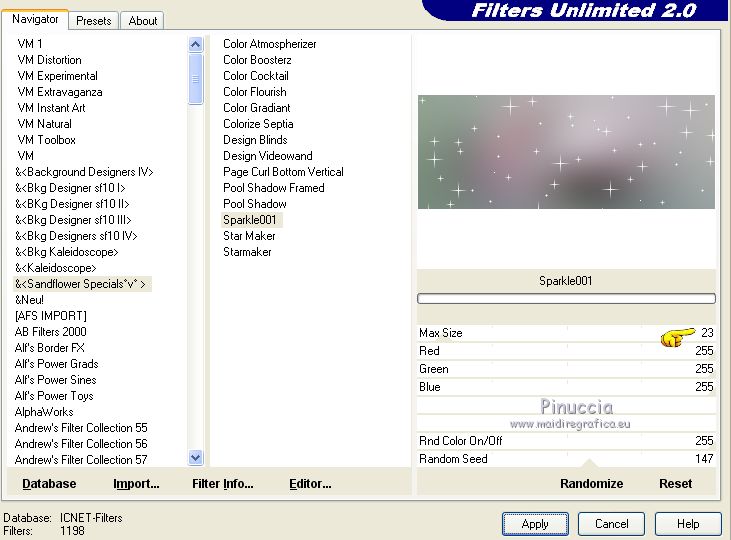 5. Effets>Modules Externes>Filters Unlimited 2.0 - &<Sandflower Specials °v°> - Sparkle 001
