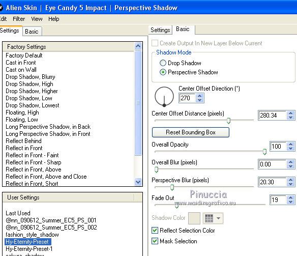 20. Effets>Modules Externes>Alien Skin Eye Candy 5 Impact - Perspective Shadow