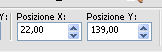 Imposta Posizione X: 22,00 e Posizione Y: 139,00