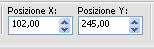 Imposta Posizione X: 102,00 e Posizione Y: 245,00