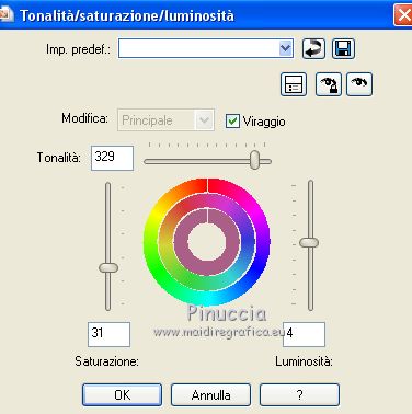 Regola>Tonalità e saturazione>Tonalità/Saturazione/Luminosità