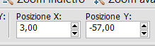 Imposta Posizione X: 3,00 e Posizione Y: -57,00