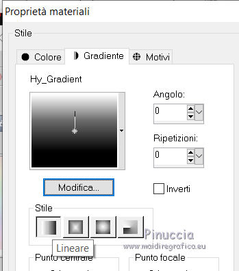 Passa il colore di primo piano a Gradiente e seleziona il gradiente fornito Hy_Gradient, stile Lineare.