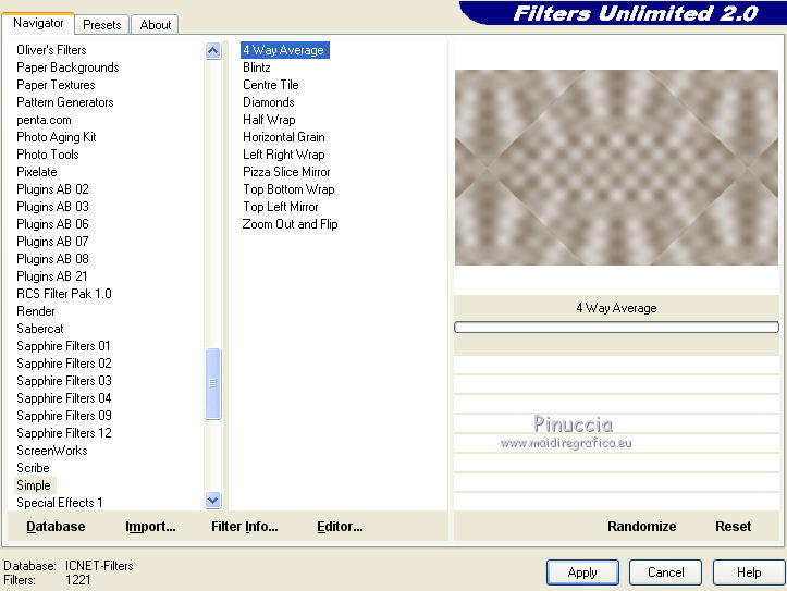 Effets>Modules Externes>Filters Unlimited 2.0 - Simple - 4Way Average.