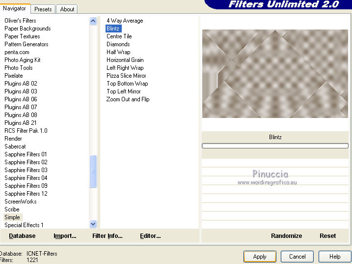 Effets>Modules Externes>Filters Unlimited 2.0 - Simple - Blintz.