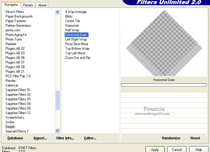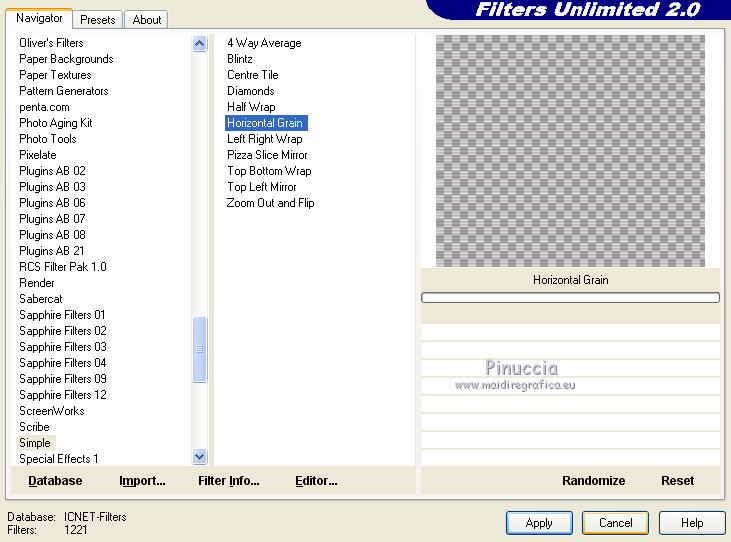 11. Effets>Modules Externes>Filters Unlimited 2.0 - Simple - Horizontal Grain