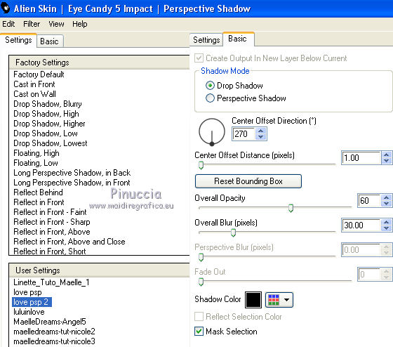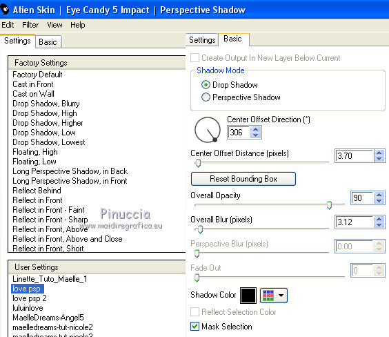 22. Effets>Modules Externes>Alien Skin Eye Candy 5 Impact - Perspective Shadow.