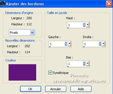 Image>Ajouter des bordures, 1 pixel, symétrique, couleur #61177c.