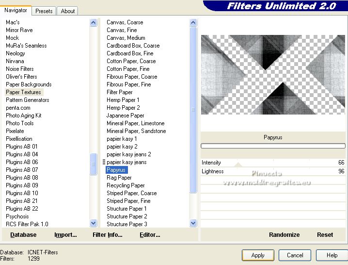 Effets>Modules Externes>Filters Unlimited 2.0 - Paper Textures - Papyrus, par défaut.