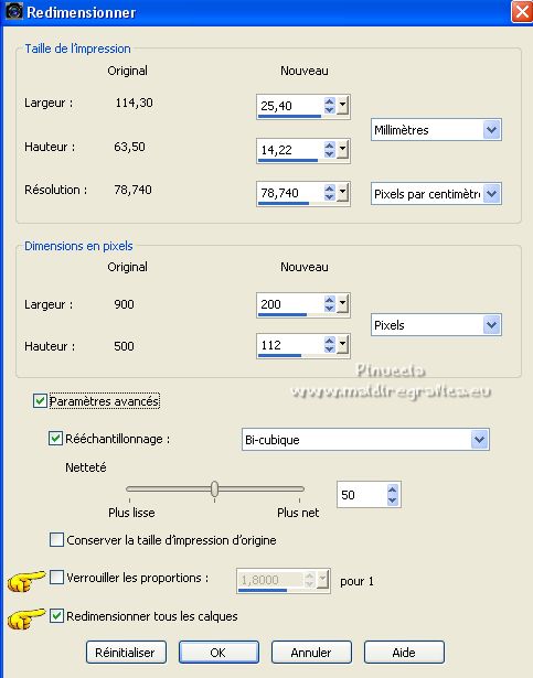 Image>Redimensionner - 200 x 112 pixels, redimensionner tous les calques coché,