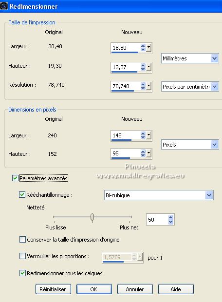 Image>Redimensionner, 148 x 95 pixels, redimensionner tous les calques coché,