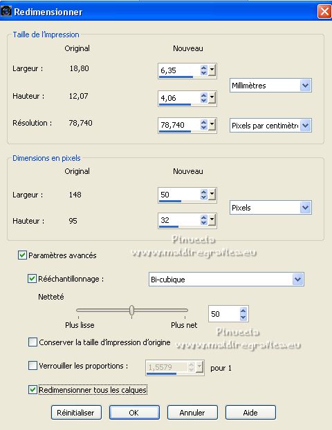 Image>Redimensionner, 50 x 32 pixels, redimensionner tous les calques coché,