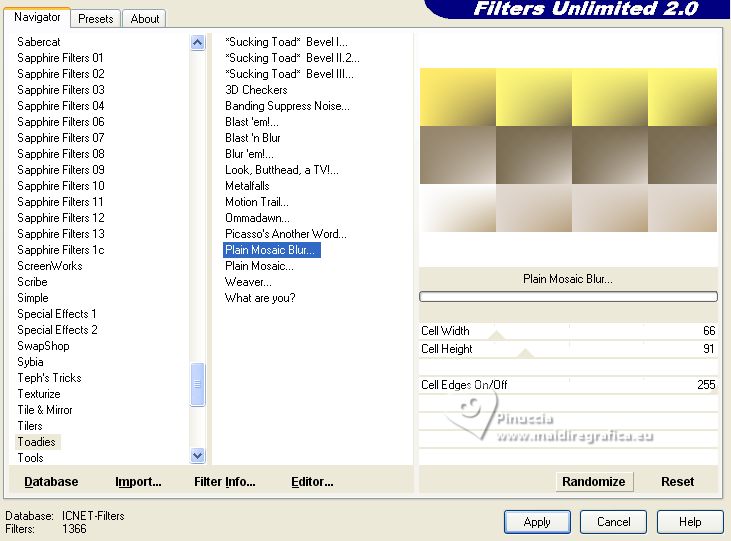Effets>Modules Externes>Filters Unlimited 2.0 - Toadies - Plain Mosaic Blur
