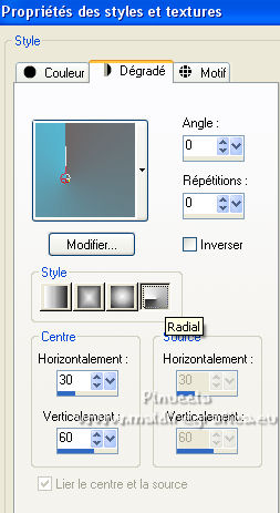 Préparer en avant plan un dégradé de premier plan/arrière plan, style Radial.