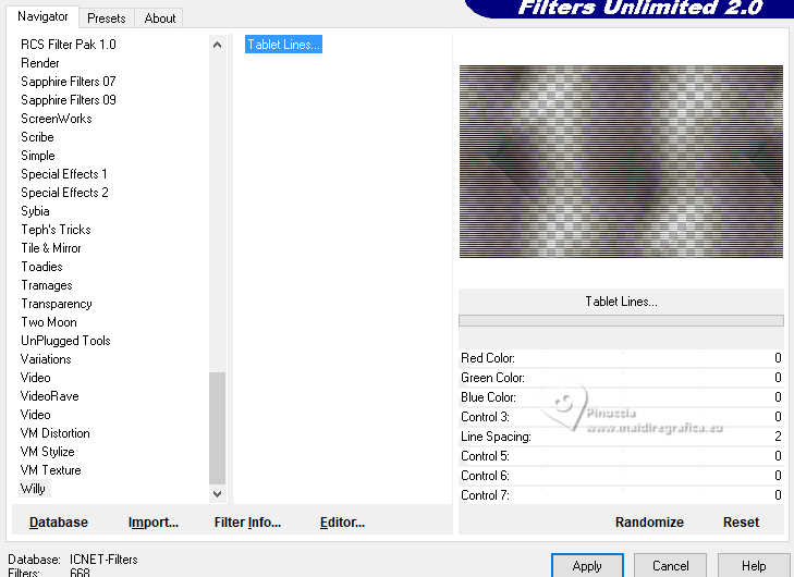 Effects>Plugins>Filters Unlimited 2.0 - Willy - Tablet Lines, default settings.