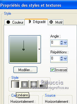 Avec ces deux couleurs préparer un dégradé de premier plan/arrière plan, style Linéaire.