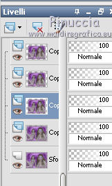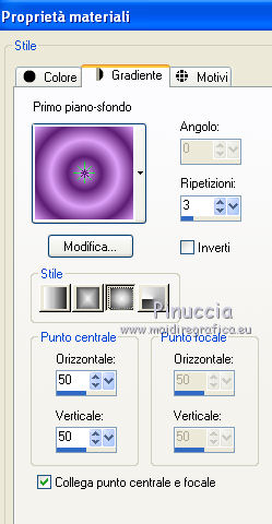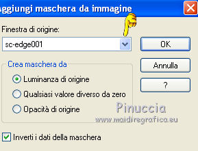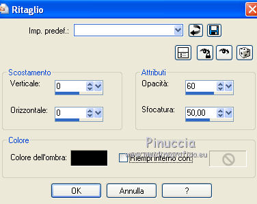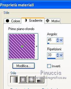qui puoi trovare qualche risposta ai tuoi dubbi. Se l'argomento che ti interessa non è presente, ti prego di segnalarmelo. Questo tutorial è stato creato con PSP X2, ma può essere eseguito anche con le altre versioni di PSP. Per tradurlo, ho usato PSP X. Grazie ai creatori dei tubes che mettono a disposizione il loro lavoro in vari gruppi di condivisione. Rispetta il lavoro degli autori, non cambiare il nome del file e non cancellare il watermark. Occorrente: Due tubes a scelta. Il resto del materiale qui Per i poser usati grazie Batschi Apri il font e minimizzalo. Lo troverai nella lista dei font disponibili quando ti servirà. Apri la maschera in PSP e minimizzala con il resto del materiale. 1. Scegli due colori dai tuoi tubes. Imposta il colore di primo piano con il colore chiaro, e il colore di sfondo con il colore scuro. Passa il colore di primo piano a Gradiente. ![]() Apri una nuova immagine trasparente 800 x 600 pixels, e riempila con il gradiente.Apri "Apo-176-bd-16-6-12" e vai a Modifica>Copia. Torna al tuo lavoro e vai a Modifica>Incolla come nuovo livello. Cambia la modalità di miscelatura di questo livello in Luminanza (esistente). Apri il tuo primo tube (il mio Ashnany5) e vai a Modifica>Copia. Torna al tuo lavoro e vai a Modifica>Incolla come nuovo livello. Immagine>Ridimensiona, se e quanto necessario (per il mio poser ho lasciato le dimensioni originali). Regola>Messa a fuoco>Metti a fuoco. Effetti>Effetti 3D>Sfalsa ombra. ![]() Sposta il tube a sinistra.2. Apri il tuo secondo tube (il mio ashnany-face). Modifica>Copia. Torna al tuo lavoro e vai a Modifica>Incolla come nuovo livello. Immagine>Ridimensiona, se e quanto necessario. (per il mio poser, ho ridimensionato una volta al 70% e una volta al 90%), tutti i livelli non selezionato. Regola>Messa a fuoco>Metti a fuoco. Effetti>Effetti 3D>Sfalsa ombra, con i settaggi precedenti. Sposta il tube a destra.Livelli>Nuovo livello raster. Riempi con il colore di primo piano.Livelli>Nuovo livello maschera>Da immagine. Apri il menu sotto la finestra di origine e vedrai la lista dei files aperti. Seleziona la maschera "sc-edge001". ![]() Livelli>Unisci>Unisci gruppo. Effetti>Effetti di bordo>Aumenta. Livelli>Unisci>Unisci tutto. 3. Selezione>Seleziona tutto. Selezione>Modifica>Contrai - 5 pixels. ![]() Livelli>Nuovo livello raster. Effetti>Effetti 3D>Ritaglio. ![]() Livelli>Unisci>Unisci giù. Selezione>Inverti. Cambia i settaggi del gradiente. ![]() Riempi la selezione con il gradiente.Selezione>Deseleziona. Livelli>Duplica. Immagine>Ridimensiona, al 90%, tutti i livelli non selezionato. Regola>Messa a fuoco>Metti a fuoco. Effetti>Effetti 3D>Sfalsa ombra. ![]() Ripeti l'Effetto Sfalsa ombra, cambiando verticale e orizzontale con -10. Livelli>Duplica. Immagine>Ridimensiona, al 90%, tutti i livelli non selezionato. Livelli>Duplica - 2 volte. Attiva il livello centrale. ![]() Immagine>Ruota per gradi - 10 gradi a destra. ![]() Regola>Messa a fuoco>Metti a fuoco. Attiva il livello soprastante. Immagine>Ruota per gradi - 10 gradi a sinistra. ![]() Regola>Messa a fuoco>Metti a fuoco. Attiva il livello superiore. Regola>Messa a fuoco>Metti a fuoco. Attiva lo strumento Testo ![]() scegli un font o usa quello fornito e scrivi il tuo testo. Aggiungi il tuo nome e/o il tuo watermark, senza dimenticare eventuali copyright delle immagini usate. Salva in formato jpg. ![]() Se hai problemi o dubbi, o trovi un link non funzionante, o anche soltanto per un saluto, scrivimi. 11 Settembre 2012 |