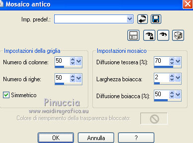 Effetti>Effetti di trama>Mosaico antico, con i settaggi precedenti.