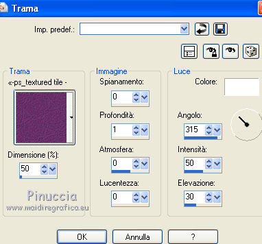 Effetti>Effetti di trama>Trama - seleziona la trama, con i seguenti settaggi.