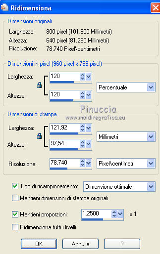 Immagine>Ridimensiona, al 120%, tutti i livelli non selezionato.