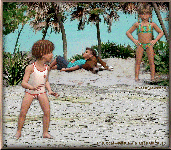 Per dare l'impressione che i bambini abbiano i piedi sotto la sabbia, ho usato il pennello Clonazione