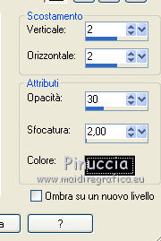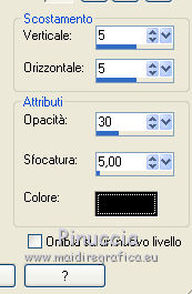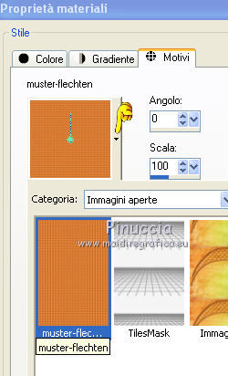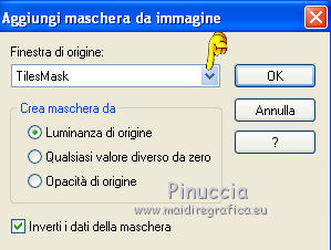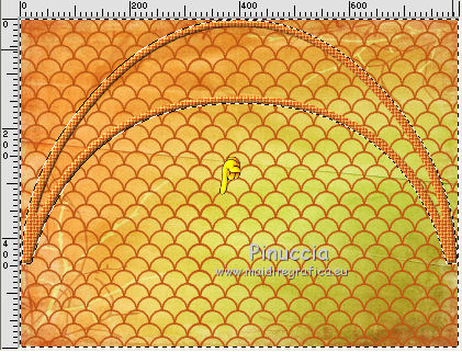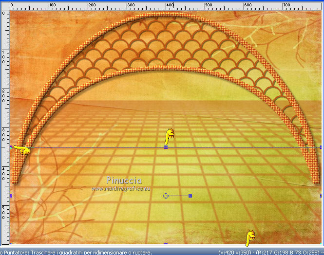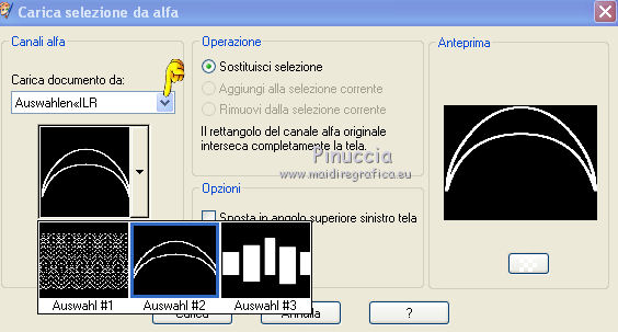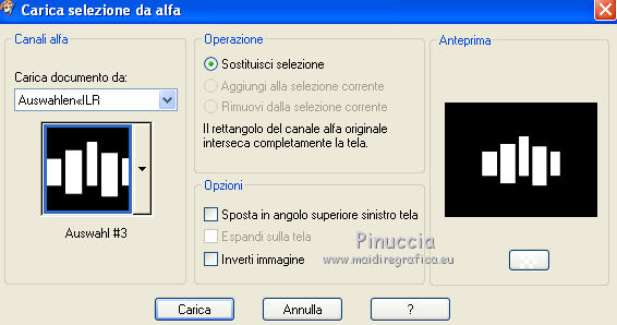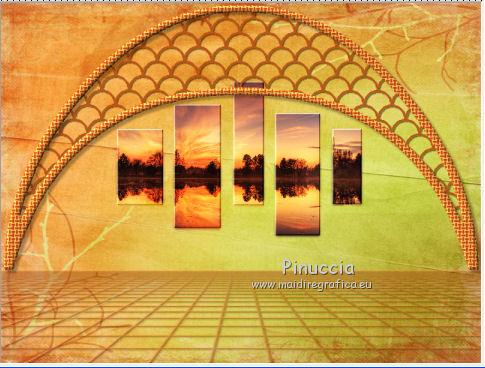 qui puoi trovare qualche risposta ai tuoi dubbi. Se l'argomento che ti interessa non è presente, ti prego di segnalarmelo. Questo tutorial è stato creato con PSP X2, ma può essere eseguito anche con le altre versioni di PSP. Per tradurlo, ho usato PSP X. Grazie ai creatori dei tubes che mettono a disposizione il loro lavoro in vari gruppi di condivisione. Rispetta il lavoro degli autori, non cambiare il nome del file e non cancellare il watermark. Occorrente: Un tube a scelta. Il resto del materiale qui Per il poser grazie Bigi Filtri: Mura's Seamless - Emboss at Alpha qui Apri il motivo muster-flechten e la maschera TilesMask e minimizzali con il resto del materiale. 1. Apri "auswahlen©ILR". Duplicala usando la combinazione di tasti maiuscola+D e chiudi l'originale. La copia sarà la base del tuo lavoro. L'immagine non è vuota, ma contiene le selezioni salvate sul canale alfa. Scegli due colori dal tuo tube. Imposta il colore di primo piano con il colore chiaro, e il colore di sfondo con il colore scuro. Selezione>Seleziona tutto. Apri "FA_G_Paper064" e vai a Modifica>Copia. Torna al tuo lavoro e vai a Modifica>Incolla nella selezione. Selezione>Deseleziona. Livelli>Nuovo livello raster. Selezione>Carica/Salva selezione>Carica selezione da canale alfa. La selezione Auswahl#1 è subito disponibile. Devi soltanto cliccare Carica. ![]() Riempi la selezione con il colore di sfondo.Selezione>Deseleziona. Livelli>Nuovo livello raster. Selezione>Carica/Salva selezione>Carica selezione da canale alfa. Apri il menu delle selezioni e carica Auswahl#2. ![]() Passa il colore di primo piano a Motivi, apri il menu e - tra Immagini aperte - seleziona il motivo. ![]() Riempi la selezione con il motivo.Effetti>Effetti 3D>Smusso a incasso. ![]() Selezione>Deseleziona. 2. Attiva lo strumento Bacchetta magica ![]() e clicca nello spazio esterno all'arco per selezionarlo. ![]() Attiva il livello sottostante. Selezione>Inverti. Selezione>Modifica>Contrai - 3 pixels. ![]() Selezione>Inverti. Premi sulla tastiera il tasto CANC. Selezione>Deseleziona. Effetti>Effetti 3D>Sfalsa ombra. ![]() Attiva il livello con l'arco. Effetti>Effetti 3D>Sfalsa ombra. ![]() Attiva il livello inferiore. Livelli>Nuovo livello raster. Riempi con il colore di sfondo.Livelli>Nuovo livello maschera>Da immagine. Apri il menu sotto la finestra di origine e vedrai la lista dei files aperti. Seleziona la maschera TilesMask, con i seguenti settaggi: ![]() Livelli>Unisci>Unisci gruppo. 3. Se non visualizzi i righelli, vai a Visualizza>Righelli. Premi il tasto K per attivare lo strumento Puntatore ![]() se stai usando PSP 9 il tasto D (valido per tutte le versioni) per attivare lo strumento Deformazione ![]() In modalità Scala spingi il nodo centrale superiore verso il basso fino a 350 pixels, (puoi controllare la posizione nella barra inferiore). ![]() Premi il tasto M per deselezionare la griglia dello strumento. Effetti>Plugins>Mura's Seamless - Emboss at Alpha. ![]() Effetti>Effetti 3D>Sfalsa ombra. ![]() Livelli>Nuovo livello raster. Selezione>Carica/Salva selezione>Carica selezione da canale alfa. Apri il menu delle selezioni e carica Auswahl#3. ![]() Apri il tube del paesaggio e vai a Modifica>Copia. Torna al tuo lavoro e vai a Modifica>Incolla nella selezione. Effetti>Plugins>Mura's Seamless - Emboss at Alpha, con i settaggi precedenti. Effetti>Effetti 3D>Sfalsa ombra. ![]() Per il mio esempio ho spostato il livello un po' più in alto.![]() 4. Attiva il livello superiore. Apri il tuo tube e vai a Modifica>Copia. Torna al tuo lavoro e vai a Modifica>Incolla come nuovo livello. Immagine>Ridimensiona, se e quanto necessario. Regola>Messa a fuoco>Metti a fuoco. Effetti>Effetti 3D>Sfalsa ombra. ![]() Spostalo a sinistra, o come preferisci.Aggiungi gli elementi decorativi che preferisci per adornare il tuo lavoro. Vedi il mio esempio per orientarti. Assicurati di essere posizionato sul livello superore. Selezione>Seleziona tutto. Apri "Rahmen-34-bd-5-10-11" e vai a Modifica>Copia. Torna al tuo lavoro e vai a Modifica>Incolla nella selezione. Selezione>Deseleziona. Per cambiare colore ai fiori della cornice, attiva lo strumento Trasforma in destinazione ![]() e passa il mouse sui fiori per colorarli. Effetti>Effetti 3D>Sfalsa ombra. ![]() Ripeti l'Effetto Sfalsa ombra, cambiando verticale e orizzontale con -5. Scrivi un testo o usa il wordart fornito con il materiale. Aggiungi il tuo nome e/o il tuo watermark su un nuovo livello, senza dimenticare eventuali copyright delle immagini usate. Livelli>Unisci>Unisci tutto e salva in formato jpg. ![]() Se hai problemi o dubbi, o trovi un link non funzionante, o anche soltanto per un saluto, scrivimi. 15 Settembre 2012 |