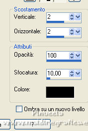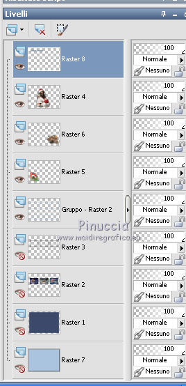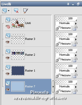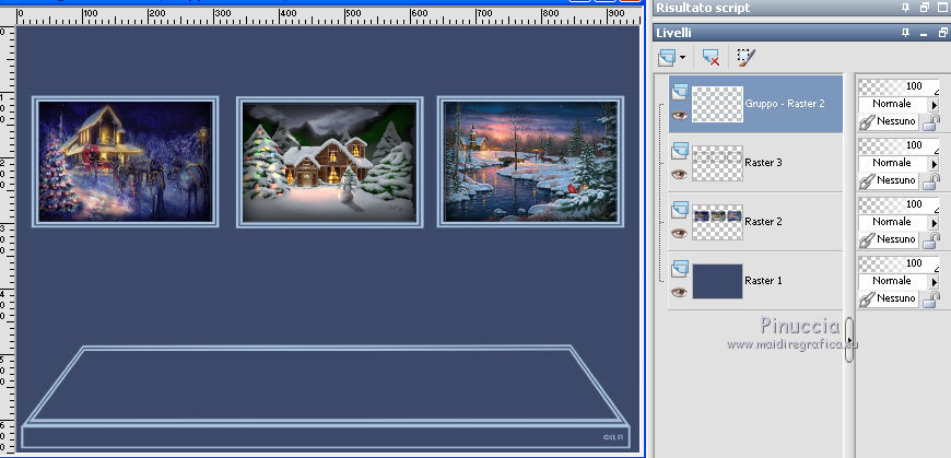 qui puoi trovare qualche risposta ai tuoi dubbi. Se l'argomento che ti interessa non è presente, ti prego di segnalarmelo. Questo tutorial è stato realizzato con Corel2020 e tradotto con PSPX e PSP7, ma può essere realizzato anche con le altre versioni di PSP. Dalla versione X4, il comando Immagine>Rifletti è stato sostituito con Immagine>Capovolgi in orizzontale, e il comando Immagine>Capovolgi con Immagine>Capovolgi in verticale. Nelle versioni X5 e X6, le funzioni sono state migliorate rendendo disponibile il menu Oggetti. Con la nuova versione X7, sono tornati Rifletti>Capovolgi, ma con nuove varianti. Vedi la scheda sull'argomento qui Grazie ai creatori dei tubes che mettono a disposizione il loro lavoro in vari gruppi di condivisione. Rispetta il lavoro degli autori, non cambiare il nome del file e non cancellare il watermark. traduzione francese qui Le vostre versioni qui![]() Occorrente: Tubes e accessori a scelta (i tube usati dall'autore sono sotto licenza). Il resto del materiale qui Per i tube della mia versione grazie Maryse, Annet e Wieske (li ho aggiunti al materiale) (in questa pagina trovi i links ai siti dei creatori di tubes) Filtri: in caso di dubbi, ricorda di consultare la mia sezione filtri qui AAA Frames - Foto Frame qui Animation Shop qui ![]() ![]() Apri il font e minimizzalo. Lo troverai nella lista dei font disponibili quando ti servirà. Con i nuovi sistemi operativi questo non è più possibile. Per usare un font, occorre copiarlo nella cartella Font di Windows. Apri la maschera in PSP e minimizzala con il resto del materiale, tranne l'animazione "snow" che userai in Animation Shop. 1. Scegli due colori dal tuo materiale e imposta il colore di primo piano con il colore chiaro, e il colore di sfondo con il colore scuro. ![]() 2. Apri una nuova immagine trasparente 950 x 650 pixels, Riempi l'immagine trasparente con il colore scuro.Livelli>Nuovo livello raster. Riempi il livello con il colore chiaro.3. Livelli>Nuovo livello maschera>Da immagine. Apri il menu sotto la finestra di origine e vedrai la lista dei files aperti. Seleziona la maschera maske100©ILR ![]() Effetti>Effetti di bordo>Aumenta. Livelli>Unisci>Unisci gruppo. Attiva lo strumento Bacchetta magica ![]() e clicca nella cornice a sinistra per selezionarla. ![]() Livelli>Nuovo livello raster. Livelli>Disponi>Sposta giù. Apri la prima immagine di sfondo e vai a Modifica>Copia. Torna al tuo lavoro e vai a Modifica>Incolla nella selezione. Regola>Messa a fuoco>Metti a fuoco. Livelli>Nuovo livello raster. Effetti>Effetti 3D>Ritaglio. ![]() Selezione>Deseleziona. 3. Attiva nuovamente il livello della maschera. Clicca nella cornice al centro con la bacchetta magica , per selezionarla.Apri la seconda immagine di sfondo e vai a Modifica>Copia. Attiva il livello Raster 2. Modifica>Incolla nella selezione. Attiva il livello Raster 3. Ripeti Effetti>Effetti 3D>Ritaglio, con i settaggi precedenti. ![]() Selezione>Deseleziona. Attiva nuovamente il livello della maschera e seleziona la terza cornice con la bacchetta magica ![]() Apri la terza immagine di sfondo e vai a Modifica>Copia. Attiva il livello Raster 2. Modifica>Incolla nella selezione. Attiva il livello Raster 3. Ripeti Effetti>Effetti 3D>Ritaglio, con i settaggi precedenti. ![]() Selezione>Deseleziona. 4. Attiva il livello superiore. ![]() Apri il tuo tube principale e vai a Modifica>Copia. Torna al tuo lavoro e vai a Modifica>Incolla come nuovo livello. Immagine>Ridimensiona, se e quanto necessario, tutti i livelli non selezionato. Regola>Messa a fuoco>Metti a fuoco. Effetti>Effetti 3D>Sfalsa ombra. ![]() Apri il tuo tube accessorio e vai a Modifica>Copia. Torna al tuo lavoro e vai a Modifica>Incolla come nuovo livello. Immagine>Ridimensiona, se e quanto necessario, tutti i livelli non selezionato. Regola>Messa a fuoco>Metti a fuoco. Effetti>Effetti 3D>Sfalsa ombra. ![]() 5. Attiva il livello inferiore. Immagine>Dimensioni tela - 1000 x 700 pixels. ![]() Livelli>Nuovo livello raster. Livelli>Disponi>Sposta giù. Riempi il livello con il colore chiaro.Effetti>Plugins>AAA Frames - Foto Frame. ![]() Attiva il livello superiore. Attiva lo strumento Testo , font Christmas Sparkle,regola la dimensione in base al testo e alla tua versione di PSP ![]() Imposta il colore di sfondo con il colore chiaro. Scrivi il testo Christmas is coming, o quello che preferisci. Livelli>Converti in livello raster. Effetti>Effetti 3D>Sfalsa ombra. ![]() Firma il tuo lavoro su un nuovo livello. 6. Animazione. Rimani posizionato sul livello superiore, e chiudi i 4 livelli inferiori. ![]() Livelli>Unisci>Unisci visibile. Chiudi questo livello, riapri i 4 livelli chiusi e attiva il livello inferiore. ![]() Livelli>Unisci>Unisci visibile. Rimani su questo livello e vai a Modifica>Copia. Apri Animation Shop e vai a Modifica>Incolla>Incolla come nuova animazione. Modifica>Duplica e ripeti fino ad avere una animazione composta da 8 fotogrammi. Clicca sul primo fotogramma per selezionarlo e vai a Modifica>Seleziona tutto. Apri l'animazione della neve, anche questa composta da 8 fotogrammi. Modifica>Seleziona tutto. Modifica>Copia. Attiva il tuo lavoro e vai a Modifica>Incolla>Incolla nel fotogramma selezionato. Posiziona la neve sul riquadro a sinistra ![]() Ripeti Modifica>Incolla>Incolla nel fotogramma selezionato. Posiziona la neve sul riquadro al centro Ripeti Modifica>Incolla>Incolla nel fotogramma selezionato. Posiziona la neve sul riquadro a destra ![]() 11. Torna in PSP. Riapri e attiva il livello superiore e vai a Modifica>Copia. Torna in Animation Shop e vai a Modifica>Incolla>Incolla come nuova animazione. Modifica>Duplica e ripeti fino ad avere una animazione composta da 8 fotogrammi. Modifica>Seleziona tutto. Modifica>Copia. Attiva il tuo lavoro e vai a Modifica>Incolla>Incolla nel fotogramma selezionato. Posiziona correttamente l'immagine e quando sei certo di aver trovato la posizione corretta, clicca con il tasto sinistro per applicare. Controlla il risultato clic