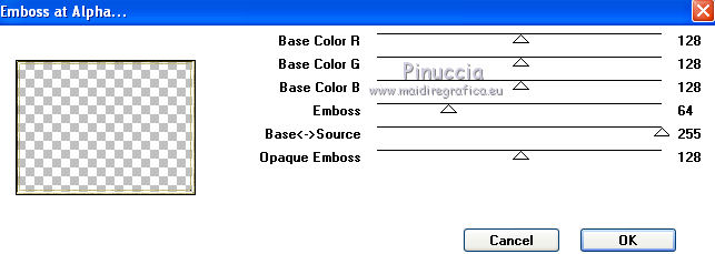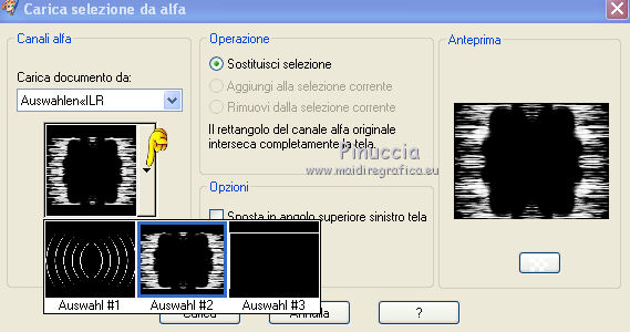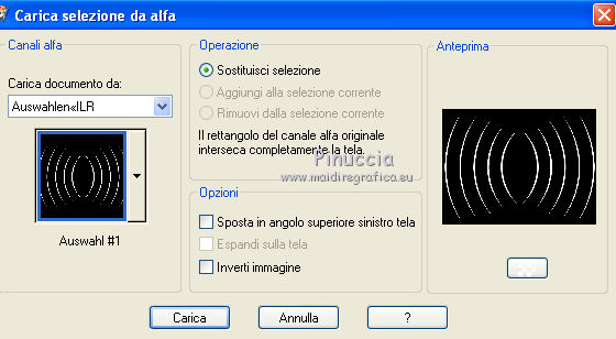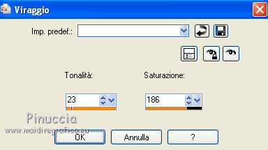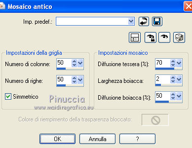 qui puoi trovare qualche risposta ai tuoi dubbi. Se l'argomento che ti interessa non è presente, ti prego di segnalarmelo. Questo tutorial è stato creato con PSP X2, ma può essere eseguito anche con le altre versioni di PSP. Per tradurlo, ho usato PSP X. Grazie ai creatori dei tubes che mettono a disposizione il loro lavoro in vari gruppi di condivisione. Rispetta il lavoro degli autori, non cambiare il nome del file e non cancellare il watermark. Occorrente: Un tube a scelta. Il resto del materiale qui Per il poser grazie Bastet Per il frattale grazie Bärbel Filtri: Mura's Seamless - Emboss at Alpha qui Xero - Improver qui Alien Skin Xenofex 2.0 - Constellation qui Animation Shop qui 1. Apri "auswahlen©ILR". Duplicala usando la combinazione di tasti maiuscola+D e chiudi l'originale. La copia sarà la base del tuo lavoro. L'immagine non è vuota, ma contiene le selezioni salvate sul canale alfa. Scegli due colori dal tuo tube. Imposta il colore di primo piano con il colore chiaro, e il colore di sfondo con il colore scuro. Passa il colore di primo piano a Gradiente. ![]() Riempi l'immagine trasparente con il gradiente.Effetti>Effetti di trama>Mosaico antico. ![]() Livelli>Nuovo livello raster. Selezione>Carica/Salva selezione>Carica selezione da canale alfa. Apri il menu delle selezioni e carica Auswahl#2. ![]() Passa il colore di primo piano a Motivi e seleziona un motivo oro a tua scelta. Riempi la selezione con il motivo oro.Selezione>Deseleziona. Effetti>Effetti 3D>Sfalsa ombra. ![]() Abbassa l'opacità di questo livello all'80%. Rinomina il livello "animazione". 2. Apri "Apo-192-bd-4-4-12" e vai a Modifica>Copia. Torna al tuo lavoro e vai a Modifica>Incolla come nuovo livello. Spostalo a sinistra.Livelli>Duplica. Immagine>Rifletti. Immagine>Capovolgi. Livelli>Unisci>Unisci giù. Prendi nota dei valori di Tonalità (H) e Saturazione (S) del tuo colore di sfondo ![]() Regola>Tonalità e saturazione>Viraggio, e trascrivi i valori annotati nelle rispettive caselle. ![]() Effetti>Effetti 3D>Sfalsa ombra, con i settaggi precedenti. Livelli>Nuovo livello raster. Selezione>Carica/Salva selezione>Carica selezione da canale alfa. La selezione Auswahl#1 è subito disponibile. Devi soltanto cliccare Carica. ![]() Riempi la selezione con il motivo oro.Selezione>Deseleziona. Effetti>Effetti 3D>Sfalsa ombra, con i settaggi precedenti. Apri il tuo tube e vai a Modifica>Copia. Torna al tuo lavoro e vai a Modifica>Incolla come nuovo livello. Immagine>Ridimensiona, se e quanto necessario. Effetti>Plugins>Xero - Improver. ![]() 3. Livelli>Nuovo livello raster. Selezione>Carica/Salva selezione>Carica selezione da canale alfa. Apri il menu delle selezioni e carica Auswahl#3. ![]() Riempi la selezione con il motivo oro.Selezione>Deseleziona. Effetti>Plugins>Mura's Seamless - Emboss at Alpha. ![]() Apri "aussparung" e vai a Modifica>Copia. Torna al tuo lavoro e vai a Modifica>Incolla come nuovo livello. Nella paletta dei livelli porta questo livello sotto il livello del bordo dorato. Attiva nuovamente il livello superiore. Apri "corner" e vai a Modifica>Copia. Torna al tuo lavoro e vai a Modifica>Incolla come nuovo livello. Apri il wordart e vai a Modifica>Copia. Torna al tuo lavoro e vai a Modifica>Incolla come nuovo livello. Posiziona il testo come preferisci, o vedi il mio esempio.Colorizzalo con i tuoi colori. Aggiungi il tuo nome e/o il tuo watermark su un nuovo livello, senza dimenticare eventuali copyright delle immagini usate. 4. Animazione. Attiva il livello "animazione". Effetti>Plugins>Alien Skin Xenofex 2.0 - Constellation. ![]() Modifica>Copia Unione. Apri Animation Shop e vai a Modifica>Incolla>Incolla come nuova animazione. Torna in PSP. Modifica>Annulla azione Constellation. Effetti>Plugins>Alien Skin Xenofex 2.0 - Constellation, clicca su Random Seed e ok. Modifica>Copia Unione. Torna in Animation Shop e vai a Modifica>Incolla>Incolla dopo il fotogramma corrente. Di nuovo in PSP. Modifica>Annulla azione Constellation. Effetti>Plugins>Alien Skin Xenofex 2.0 - Constellation, clicca su Random Seed e ok. Modifica>Copia Unione. In Animation Shop: Modifica>Incolla>Incolla dopo il fotogramma corrente. Controlla il risultato cliccando su Visualizza e salva in formato gif.![]() Se hai problemi o dubbi, o trovi un link non funzionante, o anche soltanto per un saluto, scrivimi. 15 Settembre 2012 |