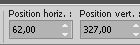 Placer Position horiz.: 62,00 et Position vert.: 327,00.