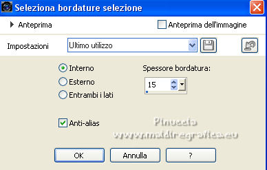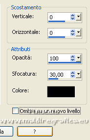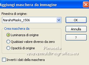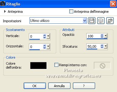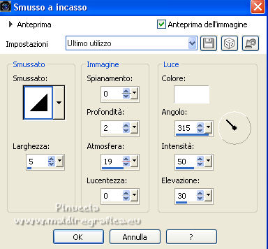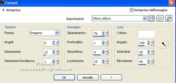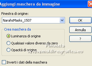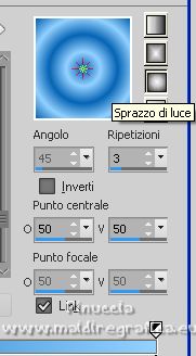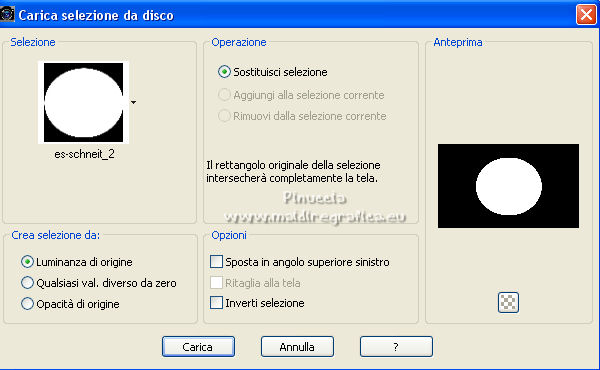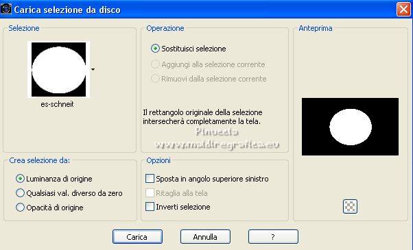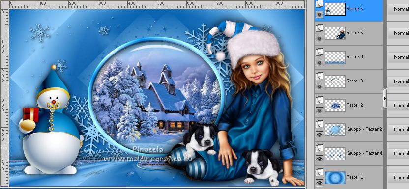 qui puoi trovare qualche risposta ai tuoi dubbi. Se l'argomento che ti interessa non è presente, ti prego di segnalarmelo. Questo tutorial è stato realizzato con Corel2020 e tradotto con PSPX e PSP7, ma può essere realizzato anche con le altre versioni di PSP. Dalla versione X4, il comando Immagine>Rifletti è stato sostituito con Immagine>Capovolgi in orizzontale, e il comando Immagine>Capovolgi con Immagine>Capovolgi in verticale. Nelle versioni X5 e X6, le funzioni sono state migliorate rendendo disponibile il menu Oggetti. Con la nuova versione X7, sono tornati Rifletti>Capovolgi, ma con nuove varianti. Vedi la scheda sull'argomento qui Grazie ai creatori dei tubes che mettono a disposizione il loro lavoro in vari gruppi di condivisione. Rispetta il lavoro degli autori, non cambiare il nome del file e non cancellare il watermark. traduzione francese qui traduzione inglese qui Le vostre versioni qui![]() Occorrente: Tube a scelta (il tube usato nel tutorial originale è un tube soggetto a licenza). ![]() Per i tubes e le maschere grazie Coly, Kamil e Narah. Per il tube usato e non fornito grazie Renée (in questa pagina trovi i links ai siti dei creatori di tubes) ![]() in caso di dubbi, ricorda di consultare la mia sezione filtri qui Filters Unlimited 2.0 qui Mehdi - Sorting Tiles qui Mura's Meister - Perspective Tiling qui Alien Skin Eye Candy 5 Impact - Glass qui Simple - Top Left Mirror qui I filtri Simple si possono usare da soli o importati in Filters Unlimited (come fare vedi qui) Se un filtro fornito appare con questa icona ![]() qui ![]() non esitare a cambiare modalità di miscelatura e opacità secondo i colori utilizzati. Nelle ultime versioni di PSP non c'é il gradiente di primo piano/sfondo (Corel_06_029) Puoi usare i gradienti delle versioni precedenti. Trovi qui i gradienti Corel X. ![]() Metti le selezioni nella cartella Selezioni. Apri le maschere in PSP e minimizzale con il resto del materiale, tranne l'animazione Snow che userai in Animation Shop 1. Scegli due colori dal tuo tube, e imposta il colore di primo piano con il colore scuro, e il colore di sfondo con il colore chiaro. ![]() Passa il colore di primo piano a Gradiente di primo piano/sfondo, stile Sprazzo di luce. ![]() Apri una nuova immagine trasparente 1000 x 600 pixels. Riempi l'immagine trasparente con il gradiente.Effetti>Plugins>Mehdi - Sorting Tiles. ![]() Effetti>Effetti di riflesso>Specchio rotante. ![]() Effetti>Plugins>Simple - Top Left Mirror. ![]() 2. Livelli>Nuovo livello raster. Riempi il livello con il colore chiaro di sfondo.Livelli>Nuovo livello maschera>Da immagine. Apri il menu sotto la finestra di origine e vedrai la lista dei files aperti. Seleziona la maschera NarahMasks_1506 ![]() Effetti>Effetti di bordo>Aumenta. Livelli>Unisci>Unisci gruppo. Livelli>Duplica - 2 volte. Livelli>Unisci>Unisci giù - 2 volte. Effetti>Effetti 3D>Sfalsa ombra, colore nero. ![]() 3. Selezione>Carica/Salva selezione>Carica selezione da disco. Cerca e carica la selezione es-schneit. ![]() Apri il tuo paesaggio, per l'esempio Kamil-212 ![]() Modifica>Copia. Torna al tuo lavoro e vai a Modifica>Incolla come nuovo livello. Ridimensiona se necessario o posiziona sulla selezione la parte del tube che vuoi lasciare visibile.Selezione>Inverti. Premi sulla tastiera il tasto CANC ![]() Selezione>Inverti. Livelli>Nuovo livello raster. 4. Effetti>Plugins>Alien Skin Eye Candy 5 Impact - Glass. ![]() Selezione>Deseleziona. Selezione>Carica/Salva selezione>Carica selezione da disco. Cerca e carica la selezione es-schneit_2. ![]() Selezione>Modifica>Seleziona bordature selezione. ![]() Cambia i settaggi del gradiente. ![]() Livelli>Nuovo livello raster. Riempi la selezione con il gradiente.Effetti>Effetti 3D>Smusso a incasso. ![]() Selezione>Deseleziona. Livelli>Unisci>Unisci giù. 5. Attiva il livello Raster 1. Livelli>Nuovo livello raster. Passa il colore di primo piano a Colore. Riempi il livello con il colore scuro di primo piano.Livelli>Nuovo livello maschera>Da immagine. Apri il menu sotto la finestra di origine e seleziona la maschera NarahsMasks_1507 ![]() Effetti>Effetti di bordo>Aumenta. Livelli>Unisci>Unisci gruppo. Effetti>Effetti di immagine>Motivo unico, con i settaggi standard. ![]() Effetti>Effetti di riflesso>Specchio rotante, con i settaggi precedenti. ![]() 7. Attiva il livello superiore. Modifica>Copia Speciale>Copia unione. Modifica>Incolla come nuovo livello. Effetti>Plugins>Mura's Meister - Perspective Tiling. ![]() Effetti>Effetti di riflesso>Specchio rotante, con i settaggi standard. ![]() Effetti>Effetti 3D>Sfalsa ombra, colore nero. ![]() Apri il tuo tube principale - per me Renee_TUBES-Fetes-2022 ![]() Modifica>Copia. Torna al tuo lavoro e vai a Modifica>Incolla come nuovo livello. Immagine>Ridimensiona, se e quanto necessario, tutti i livelli non selezionato. Regola>Messa a fuoco>Metti a fuoco. Spostalo a destra.Effetti>Effetti 3D>Sfalsa ombra, con i settaggi precedenti. 8. Apri il tube accessorio bonhommeneig2-coly ![]() Cancella il watermark e vai a Modifica>Copia. Torna al tuo lavoro e vai a Modifica>Incolla come nuovo. Immagine>Ridimensiona, all'80%, tutti i livelli non selezionato. Regola>Messa a fuoco>Metti a fuoco. Spostalo a sinistra.Effetti>Effetti 3D>Sfalsa ombra, colore nero. ![]() Dovresti avere questo: ![]() Attiva il livello di sfondo, Raster 1. Immagine>Dimensioni tela - 1100 x 700 ![]() Attiva lo strumento Bacchetta magica ![]() e clicca nello spazio trasparente per selezionarlo. Livelli>Nuovo livello raster. Livelli>Disponi>Porta in alto. Riporta il colore di primo a Gradiente ![]() Riempi il livello con il gradiente.9. Effetti>Effetti di trama>Ciottoli. ![]() Effetti>Effetti 3D>Smusso a incasso, con i settaggi precedenti. ![]() Selezione>Inverti. Livelli>Nuovo livello raster. Effetti>Effetti 3D>Ritaglio. ![]() Selezione>Deseleziona. Firma il tuo lavoro su un nuovo livello. Livelli>Unisci>Unisci giù, fino al livello Raster 3. ![]() Chiudi questo livello e attiva il livel