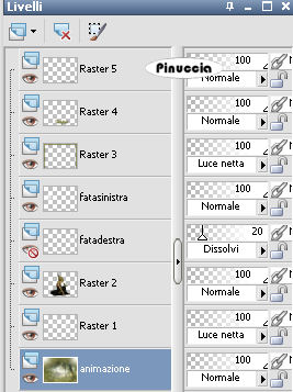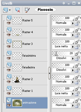 e abbassa l'opacità del livello "fata sinistra" al 20%.