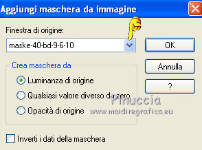 Apri il menu sotto la finestra di origine e vedrai la lista dei files aperti. Tra questi la maschera.