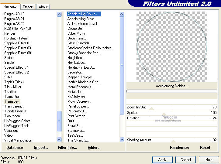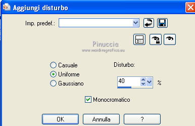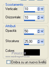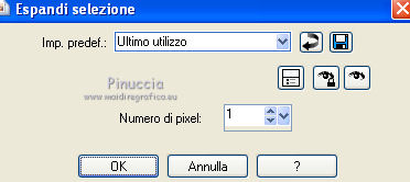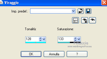 qui puoi trovare qualche risposta ai tuoi dubbi. Se l'argomento che ti interessa non è presente, ti prego di segnalarmelo. Questo tutorial è stato creato con PSP X2, ma può essere eseguito anche con le altre versioni di PSP. Per tradurlo, ho usato PSP X. Grazie ai creatori dei tubes che mettono a disposizione il loro lavoro in vari gruppi di condivisione. Rispetta il lavoro degli autori, non cambiare il nome del file e non cancellare il watermark. Occorrente: Template 7 qui Lo scrapkit My Garden qui 2 tube a scelta. Per il mio esempio ho usato due poser di Bârbel Filtri: Filters Unlimited 2.0 qui Tramages - Accelerating Daisies qui Xero - Improver qui Animation Shop qui 1. Scegli due colori dai tuoi tubes. Imposta il colore di primo piano con il colore chiaro, e il colore di sfondo con il colore scuro. Prendi nota dei valori di tonalità (H) e saturazione (S) del tuo colore di sfondo. ![]() Apri il template. Attiva il livello inferiore "obj-1". Regola>Tonalità e saturazione>Viraggio e trascrivi nelle rispettive caselle i valori che hai annotato. ![]() Effetti>Effetti 3D>Sfalsa ombra ![]() (per il mio esempio, in questi casi attiva il livello originale. Livelli>Unisci>Unisci giù). Attiva il livello "obj-2". Attiva lo strumento Bacchetta magica ![]() ![]() Clicca nel bordo bruno per selezionarlo. Selezione>Modifica>Espandi - 1 pixel. ![]() Riempi il livello con il colore di sfondo.Regola>Aggiungi/Rimuovi disturbo>Aggiungi disturbo. ![]() Selezione>Deseleziona. Effetti>Effetti 3D>Sfalsa ombra. ![]() 2. Attiva il livello "obj-3". Seleziona il bordo sottile con la bacchetta magica ![]() Selezione>Modifica>Espandi - 1 pixel. Riempi con il colore di primo piano.Effetti>Plugins>Filters Unlimited 2.0 - Tramages - Accelerating Daisies, con i settaggi standard. ![]() Effetti>Effetti di bordo>Aumenta. Selezione>Deseleziona. Attiva il livello "obj-4". Seleziona il bordo bruno con la bacchetta magica ![]() (il realtà è un cerchio di cui resta visibile soltanto il bordo, perchè coperto dal livello soprastante). Selezione>Modifica>Espandi - 1 pixel. Dallo Scrapkit apri Paper 3 e vai a Modifica>Copia. Torna al tuo lavoro e vai a Modifica>Incolla nella selezione. Effetti>Effetti di bordo>Aumenta. Regola>Tonalità e saturazione>Viraggio, con i settaggi precedenti. Selezione>Deseleziona. Effetti>Effetti 3D>Sfalsa ombra, con i settaggi precedenti. 3. Attiva il livello "obj-5". Seleziona il cerchio chiaro con la bacchetta magica ![]() Selezione>Modifica>Espandi - 1 pixel. Livelli>Nuovo livello raster. Riempi con il colore di sfondo.Regola>Aggiungi/Rimuovi disturbo>Aggiungi disturbo, con i settaggi precedenti. Livelli>Nuovo livello raster. Dallo scrapkit apri "Deko8" e vai a Modifica>Copia. Torna al tuo lavoro e vai a Modifica>Incolla nella selezione. Regola>Tonalità e saturazione>Viraggio, con i settaggi precedenti. Selezione>Deseleziona. Effetti>Effetti 3D>Sfalsa ombra. ![]() Livelli>Unisci>Unisci giù - 2 volte. 4. Attiva il livello "obj-6". Seleziona il bordo con la bacchetta magica ![]() Selezione>Modifica>Espandi - 1 pixel. Dallo scrapkit apri "Paper10" e vai a Modifica>Copia. Torna al tuo lavoro e vai a Modifica>Incolla nella selezione. Regola>Tonalità e saturazione>Viraggio, con i settaggi precedenti. Selezione>Deseleziona. Effetti>Effetti di bordo>Aumenta. Effetti>Effetti 3D>Sfalsa ombra. ![]() Attiva il livello "obj-7". Seleziona l'ovale con la bacchetta magica ![]() Selezione>Modifica>Espandi - 1 pixel. Livelli>Nuovo livello raster. Riempi con il colore di primo piano.Livelli>Nuovo livello raster. Riempi con il colore di sfondo.Regola>Aggiungi/Rimuovi disturbo>Aggiungi disturbo, con i settaggi precedenti. Livelli>Nuovo livello raster. Attiva nuovamente l'elemento "deko8" e vai a Modifica>Copia. Torna al tuo lavoro e vai a Modifica>Incolla nella selezione. Regola>Tonalità e saturazione>Viraggio, con i settaggi precedenti. Mantieni selezionato. 5. Apri il tuo primo tube e vai a Modifica>Copia. Torna al tuo lavoro e vai a Modifica>Incolla come nuovo livello. Immagine>Ridimensiona, se e quanto necessario. Posiziona il tube nell'area selezionata.Selezione>Inverti. Premi sulla tastiera il tasto CANC. Selezione>Deseleziona. Attiva il livello con l'elemento "deko8". Effetti>Effetti 3D>Sfalsa ombra. ![]() Attiva il livello del tube. Effetti>Plugins>Xero - Improver. ![]() Effetti>Effetti 3D>Sfalsa ombra. ![]() 6. Attiva il livello "obj-8". Seleziona con la bacchetta magica ![]() Selezione>Modifica>Espandi - 1 pixels. Dallo scrapkit apri "paper8" e vai a Modifica>Copia. Torna al tuo lavoro e vai a Modifica>Incolla come nuovo livello. Selezione>Inverti. Premi sulla tastiera il tasto CANC. Selezione>Deseleziona. Regola>Tonalità e saturazione>Viraggio, con i settaggi precedenti. Livelli>Unisci>Unisci giù. Effetti>Effetti 3D>Sfalsa ombra, con i settaggi precedenti. Attiva il livello "obj-9". Seleziona il rettangolo con la bacchetta magica ![]() Dallo scrapkit apri "paper9" e vai a Modifica>Copia. Torna al tuo lavoro e vai a Modifica>Incolla come nuovo livello. Posiziona correttamente la carta nell'area selezionata,come nell'esempio. ![]() Selezione>Inverti. Premi sulla tastiera il tasto CANC. Selezione>Deseleziona. Regola>Tonalità e saturazione>Viraggio, con i settaggi precedenti. Livelli>Unisci>Unisci giù. 7. Attiva il livello "obj-10". Seleziona il rettangolo con la bacchetta magica ![]() Dallo scrapkit apri "paper4" e vai a Modifica>Copia. Torna al tuo lavoro e vai a Modifica>Incolla come nuovo livello. Selezione>Inverti. Premi sulla tastiera il tasto CANC. Selezione>Deseleziona. Regola>Tonalità e saturazione>Viraggio, con i settaggi precedenti. Effetti>Effetti di bordo>Aumenta. Livelli>Unisci>Unisci giù. Effetti>Effetti 3D>Sfalsa ombra. ![]() Attiva il livello "obj-11". Seleziona il rettangolo con la bacchetta magica ![]() Dallo scrapkit apri "paper10" e vai a Modifica>Copia. Torna al tuo lavoro e vai a Modifica>Incolla come nuovo livello. Selezione>Inverti. Premi sulla tastiera il tasto CANC