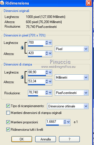 Immagine>Ridimensiona, a 700 pixels di larghezza, tutti i livelli selezionato.