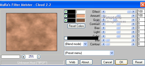 Premere successivamente il tasto Reset serve per cambiare casualmente (ragione per la quale il tuo risultato non potrà essere uguale al mio esempio, l'aspetto delle nuvole.