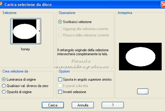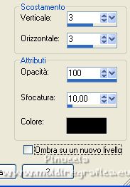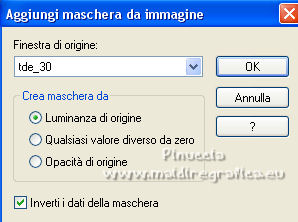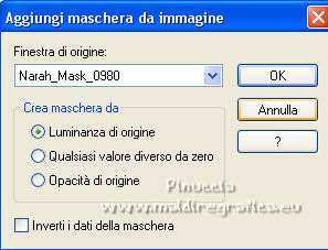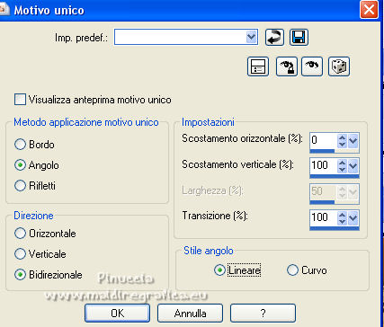qui puoi trovare qualche risposta ai tuoi dubbi. Se l'argomento che ti interessa non è presente, ti prego di segnalarmelo. Questo tutorial è stato realizzato con Corel2020 e tradotto con PSPX e PSP7, ma può essere realizzato anche con le altre versioni di PSP. Dalla versione X4, il comando Immagine>Rifletti è stato sostituito con Immagine>Capovolgi in orizzontale, e il comando Immagine>Capovolgi con Immagine>Capovolgi in verticale. Nelle versioni X5 e X6, le funzioni sono state migliorate rendendo disponibile il menu Oggetti. Con la nuova versione X7, sono tornati Rifletti>Capovolgi, ma con nuove varianti. Vedi la scheda sull'argomento qui Grazie ai creatori dei tubes che mettono a disposizione il loro lavoro in vari gruppi di condivisione. Rispetta il lavoro degli autori, non cambiare il nome del file e non cancellare il watermark. traduzione francese qui Le vostre versioni qui![]() Occorrente: A scelta un'immagine di sfondo e un tube (il tube usato dall'autore è sotto licenza). Il resto del materiale qui Per il tube usato grazie Kitty Per le maschere grazie Narah e TD (in questa pagina trovi i links ai siti dei creatori di tubes) Filtri: in caso di dubbi, ricorda di consultare la mia sezione filtri qui Filters Unlimited 2.0 qui Mehdi - Sorting Tiles qui Mura's Meister - Perspective Tiling qui [AFS IMPORT] - sqborder2 qui I filtri AFS IMPORT si possono usare da soli o importati in Filters Unlimited (come fare vedi qui) Se un filtro fornito appare con questa icona ![]() non esitare a cambiare modalità di miscelatura e opacità secondo i colori utilizzati. Metti la selezione nella cartella Selezioni. Apri le maschere in PSP e minimizzale con il resto del materiale. 1. Scegli dai tuoi tubes un colore chiaro e un colore scuro. Apri una nuova immagine trasparente 1000 x 650 pixels. Riempi l'immagine trasparente con il colore scuro.Selezione>Seleziona tutto. Apri la tua immagine di sfondo e vai a Modifica>Copia. Torna al tuo lavoro e vai a Modifica>Incolla nella selezione. Selezione>Deseleziona. Effetti>Effetti di immagine>Motivo unico, con i settaggi standard. ![]() Regola>Sfocatura>Sfocatura gaussiana - raggio 30. ![]() 2. Effetti>Plugins>Mehdi - Sorting Tiles. ![]() Effetti>Effetti di riflesso>Specchio rotante. ![]() Livelli>Nuovo livello raster. Riempi il livello con il colore chiaro.Livelli>Nuovo livello maschera>Da immagine. Apri il menu sotto la finestra di origine e vedrai la lista dei files aperti. Seleziona la maschera tde_30. ![]() Effetti>Effetti di bordo>Aumenta. Livelli>Unisci>Unisci gruppo. 3. Selezione>Carica/Salva selezione>Carica selezione da disco. Cerca e carica la selezione honey. ![]() Livelli>Nuovo livello raster. Apri il tube marita-w-blume-7-bd1-14-5-14 e vai a Modifica>Copia. Torna al tuo lavoro e vai a Modifica>Incolla nella selezione. Selezione>Deseleziona. Regola>Messa a fuoco>Metti a fuoco. Livelli>Unisci>Unisci giù. Effetti>Effetti 3D>Sfalsa ombra. ![]() 4. Immagine>Ridimensiona, al 70%, tutti i livelli non selezionato. Tasto K per attivare lo strumento Puntatore ![]() e imposta Posizione X: 171,00 e Posizione Y: 21,00. ![]() Effetti>Effetti di immagine>Motivo unico. ![]() Livelli>Nuovo livello raster. Riempi il livello con il colore chiaro.Livelli>Nuovo livello maschera>Da immagine. Apri il menu sotto la finestra di origine e seleziona la maschera Narah_mask_0980. ![]() Effetti>Effetti di bordo>Aumenta. Livelli>Unisci>Unisci gruppo. 5. Livelli>Disponi>Sposta giù. Immagine>Capovolgi. Effetti>Effetti di riflesso>Specchio rotante, con i settaggi precedenti. ![]() Attiva il livello inferiore, Raster 1. Livelli>Duplica. Effetti>Plugins>Mura's Meister - Perspective Tiling. ![]() Effetti>Effetti 3D>Sfalsa ombra, con i settaggi precedenti. Attiva il livello superiore. 6. Copia/incolla come nuovo livello i tubes accessori. Immagine>Ridimensiona, se e quanto necessario, tutti i livelli non selezionato. Regola>Messa a fuoco>Metti a fuoco. Effetti>Effetti 3D>Sfalsa ombra, con i settaggi precedenti. Posiziona i tubes a tuo piacimento; per il mio esempio![]() Apri il file di testo e vai a Modifica>Copia. Torna al tuo lavoro e vai a Modifica>Incolla come nuovo livello. Immagine>Ridimensiona, all'80%, tutti i livelli non selezionato. Regola>Messa a fuoco>Metti a fuoco. Sposta il testo in alto.![]() Effetti>Effetti 3D>Sfalsa ombra. ![]() 7. Immagine>Aggiungi bordatura, 2 pixels, simmetriche, colore scuro. Immagine>Aggiungi bordatura, 5 pixels, simmetriche, colore chiaro. Immagine>Aggiungi bordatura, 2 pixels, simmetriche, colore scuro. Selezione>Seleziona tutto. Modifica>Copia. Immagine>Aggiungi bordatura, 50 pixels, simmetriche, colore chiaro. Selezione>Inverti. Modifica>Incolla nella selezione. 8. Regola>Sfocatura>Sfocatura gaussiana, con i settaggi precedenti. Selezione>Modifica>Contrai - 10 pixels. Effetti>Plugins>&91;AFS IMPORT&93; - sqborder2, con i settaggi standard. ![]() Selezione>Modifica>Contrai - 10 pixels. Riempi con il colore scuro.Selezione>Seleziona tutto. Selezione>Modifica>Contrai - 50 pixels. Effetti>Effetti 3D>Sfalsa ombra. ![]() Modifica>Ripeti Sfalsa ombra. 9. Selezione>Inverti. Effetti>Plugins>Filters Unlimited 2.0 - Buttons &Frames - 3D Glass Frame 1, con i settaggi standard. ![]() Selezione>Deseleziona. Apri il tuo tube e vai a Modifica>Copia. Torna al tuo lavoro e vai a Modifica>Incolla come nuovo livello. Immagine>Ridimensiona, se e quanto necessario, tutti i livelli non selezionato. Regola>Messa a fuoco>Metti a fuoco. Sposta il tube dove preferisci.Effetti>Effetti 3D>Sfalsa ombra, con i settaggi precedenti. Apri il tube corner e vai a Modifica>Copia. Torna al tuo lavoro e vai a Modifica>Incolla come nuovo livello. Immagine>Ridimensiona, 1050 pixels di larghezza, tutti i livelli selezionato. Firma il tuo lavoro su un nuovo livello. Livelli>Unisci>Unisci tutto e salva in formato jpg. Per i tubes di questo esempio grazie Belscrap. ![]() ![]() Se hai problemi o dubbi, o trovi un link non funzionante, o anche soltanto per un saluto, scrivimi. 22 A