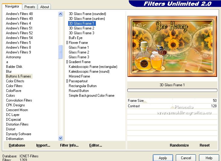 Effets>Modules Externes>Filters Unlimited 2.0 - Buttons &Frames - 3D Glass Frame 1, par défaut.