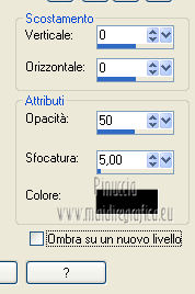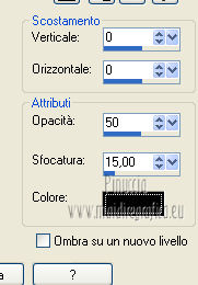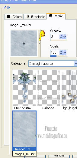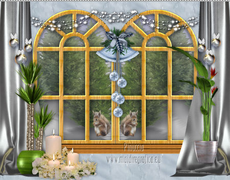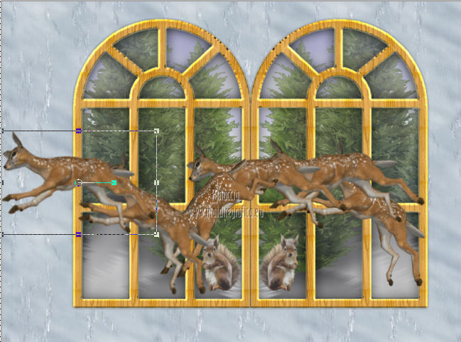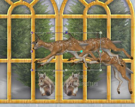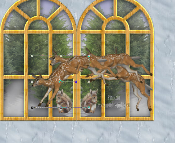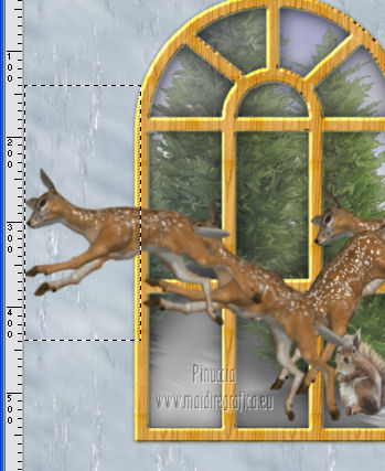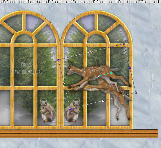 qui puoi trovare qualche risposta ai tuoi dubbi. Se l'argomento che ti interessa non è presente, ti prego di segnalarmelo. Questo tutorial è stato creato con PSP X2, ma può essere eseguito anche con le altre versioni di PSP. Per tradurlo, ho usato PSP X. Grazie ai creatori dei tubes che mettono a disposizione il loro lavoro in vari gruppi di condivisione. Rispetta il lavoro degli autori, non cambiare il nome del file e non cancellare il watermark. Occorrente: Un paesaggio in tema a tua scelta. Per il mio esempio ho usato materiale di Gerda Trovi il poser qui Le renne qui Le piante qui La tenda qui Il resto del materiale qui Animation Shop qui 1. Apri il motivo "Image_muster" e minimizzalo. Passa il colore di primo piano a Motivi, e cerca l'immagine nella categoria Immagini aperte. Seleziona il motivo con i seguenti settaggi: ![]() Apri una nuova immagine trasparente 900 x 700 pixels, e riempila con il motivo.Apri la tua immagine di sfondo e vai a Modifica>Copia. Torna al tuo lavoro e vai a Modifica>Incolla come nuovo livello. Apri "christmaswindow" e vai a Modifica>Copia. Torna al tuo lavoro e vai a Modifica>Incolla come nuovo livello. Sposta la finestra un po' più in alto.Attiva lo strumento Bacchetta magica ![]() e clicca all'esterno della finestra. Selezione>Inverti. Selezione>Modifica>Contrai - 10 pixels. ![]() Di nuovo Selezione>Inverti. Attiva il livello dell'immagine. Se necessario, posiziona correttamente l'immagine dietro la finestra.Premi sulla tastiera il tasto CANC. Selezione>Deseleziona. Attiva nuovamente il livello della finestra. Effetti>Effetti 3D>Sfalsa ombra. ![]() 2. Apri "fensterbank" e vai a Modifica>Copia. Torna al tuo lavoro e vai a Modifica>Incolla come nuovo livello. Sposta il tube sotto la finestra.Apri il tube della prima renna "Deer-2012-03" e vai a Modifica>Copia. Torna al tuo lavoro e vai a Modifica>Incolla come nuovo livello. Immagine>Ridimensiona, 2 volte al 50% e una volta al 90%, tutti i livelli non selezionato. Posiziona il tube a destra.![]() Livelli>Duplica. Premi il tasto K per attivare lo strumento Puntatore ![]() se stai usando PSP 9 il tasto D (valido per tutte le versioni) per attivare lo strumento Deformazione ![]() sposta la renna ruotandola come nell'esempio. ![]() Livelli>Duplica e sposta la renna a sinistra.![]() Apri la seconda renna Deer-2012-04 e vai a Modifica>Copia. Torna al tuo lavoro e vai a Modifica>Incolla come nuovo livello. Immagine>Ridimensiona, 2 volte al 50%, e una volta al 90%, tutti i livelli non selezionato. Sposta la renna a sinistra,ruotandola come nell'esempio. ![]() Duplica ancora una volta la prima renna Livelli>Disponi>Porta in alto. Sposta ![]() la renna ancora a sinistra. ![]() Duplica ancora la seconda renna. Livelli>Disponi>Porta in alto. Spostala a sinistra.![]() 3. Attiva lo strumento Selezione , rettangolo,e seleziona la parte di renna esterna alla finestra. ![]() Premi sulla tastiera il tasto CANC. Selezione>Deseleziona. Attiva il livello della prima renna. Regola>Messa a fuoco>Metti a fuoco. Effetti>Effetti 3D>Sfalsa ombra. ![]() Ripeti sui successivi livelli delle renne: Regola>Messa a fuoco>Metti a fuoco. Effetti>Effetti 3D>Sfalsa ombra, con i settaggi precedenti. Attiva il livello della finestra. Livelli>Disponi>Porta in alto. Rinomina i livelli delle renne, dal basso verso l'alto da "1" a "6". Quando hai fatto, chiudi i livelli delle renne. Apri il tube della tenda "Vorhaenge-2011-33" e copia il livello della tenda a sinistra. Torna al tuo lavoro e vai a Modifica>Incolla come nuovo livello. Immagine>Ridimensiona, al 90%, tutti i livelli non selezionato. Sposta la tenda a sinistra.Livelli>Duplica. Immagine>Rifletti. Livelli>Unisci>Unisci giù. 4. Apri "Girlande" e vai a Modifica>Copia. Torna al tuo lavoro e vai a Modifica>Incolla come nuovo livello. Sposta la ghirlanda in alto.Porta questo livello sotto il livello della tenda. ![]() Regola>Messa a fuoco>Metti a fuoco. Effetti>Effetti 3D>Sfalsa ombra, con i settaggi precedenti. Attiva il livello superiore. Apri il tube "lgd_kugel-deko" e vai a Modifica>Copia. Torna al tuo lavoro e vai a Modifica>Incolla come nuovo livello. Spostalo in alto a sinistra.![]() Livelli>Duplica. Immagine>Rifletti. Livelli>Unisci>Unisci giù. Effetti>Effetti 3D>Sfalsa ombra, con i settaggi precedenti. Copia e incolla sul tuo lavoro i tubes delle piante. Per il mio esempio ho usato "Blumen-50-2011" e "Blumen-46-2011", e ho ridimensionato entrambi i tubes al 65%. Su entrambi i livelli: Regola>Messa a fuoco>Metti a fuoco. Effetti>Effetti 3D>Sfalsa ombra, con i settaggi precedenti. ![]() 5. Apri il tube delle candele e vai a Modifica>Copia. Torna al tuo lavoro e vai a Modifica>Incolla come nuovo livello. Immagine>Ridimensiona, al 50%, tutti i livelli non selezionato. Sposta le candele in basso a sinistra.Regola>Messa a fuoco>Metti a fuoco. Effetti>Effetti 3D>Sfalsa ombra, con i settaggi precedenti. Apri il tube "FM-Christmas-Time-Element-2" e vai a Modifica>Copia. Torna al tuo lavoro e vai a Modifica>Incolla come nuovo livello. Immagine>Ridimensiona, al 60%, tutti i livelli non selezionato. Sposta il tube al centro della finestra.Regola>Messa a fuoco>Metti a fuoco. Effetti>Effetti 3D>Sfalsa ombra, con i settaggi precedenti. ![]() Apri il tuo tube e vai a Modifica>Copia. Torna al tuo lavoro e vai a Modifica>Incolla come nuovo livello. Immagine>Ridimensiona, se e quanto necessario. Sposta il tube in basso a destra,o dove preferisci. Regola>Messa a fuoco>Metti a fuoco. Apri "perlenrahmen" e vai a Modifica>Copia. Torna al tuo lavoro e vai a Modifica>Incolla come nuovo livello. Apri il tube "text" e vai a Modifica>Copia. Torna al tuo lavoro e vai a Modifica>Incolla come nuovo livello. Sposta il testo in alto.Se preferisci, scrivi un tuo testo a scelta. Aggiungi il tuo nome e/o il tuo watermark su un nuovo livello senza dimenticare il copyright delle immagini usate. 6. Animazione. Modifica>Copia Unione. Apri Animation Shop e vai a Modifica>Incolla>Incolla come nuova animazione. Torna in 