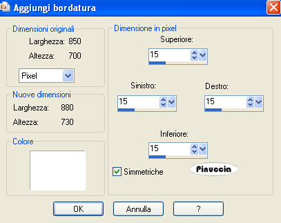 6. Immagine>Aggiungi bordatura, 15 pixels, simmetriche, con il colore bianco.