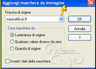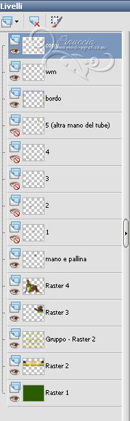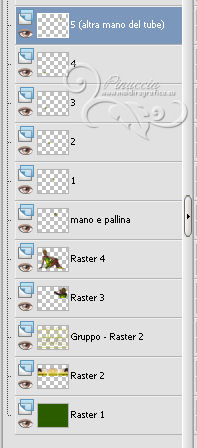 qui puoi trovare qualche risposta ai tuoi dubbi. Se l'argomento che ti interessa non è presente, ti prego di segnalarmelo. Questo tutorial è stato creato con PSP X2, ma può essere eseguito anche con le altre versioni di PSP. Per tradurlo, ho usato PSP X. Se stai usando le nuove versioni di PSP, a proposito delle funzioni Rifletti/Capovolgi, vedi la mia scheda qui Grazie ai creatori dei tubes che mettono a disposizione il loro lavoro in vari gruppi di condivisione. Rispetta il lavoro degli autori, non cambiare il nome del file e non cancellare il watermark. Occorrente: A scelta un paesaggio e due personaggi (un tube seduto e un tube con pallina). Il resto del materiale qui Per i poser usati grazie Marion. Filtri: Xero - Improver qui Animation Shop qui Apri la maschera in PSP e minimizzala con il resto del materiale. 1. Scegli due colori dai tuoi tubes, imposta il colore di primo piano con il colore chiaro, e il colore di sfondo con il colore scuro. I miei colori. ![]() Apri una nuova immagine trasparente 900 x 700 pixels, e riempila con il colore di sfondo.Livelli>Nuovo livello raster. Riempi con il colore di primo piano.Livelli>Nuovo livello maschera>Da immagine. Apri il menu sotto la finestra di origine e vedrai la lista dei files aperti. Seleziona la maschera "maske66©ILR". ![]() Livelli>Unisci>Unisci gruppo. Effetti>Effetti di bordo>Aumenta. Effetti>Effetti 3D>Sfalsa ombra. ![]() 2. Apri il tuo tube di sfondo e vai a Modifica>Copia. Torna al tuo lavoro e vai a Modifica>Incolla come nuovo livello. Posiziona il tube nell'area dei riquadri superiori della maschera.Livelli>Duplica. Immagine>Rifletti. Posiziona correttamente il paesaggio(vedi il mio esempio per orientarti). ![]() Livelli>Disponi>Sposta giù (sotto il livello della maschera). Assicurati di essere posizionato sul livello superiore dei due, e vai a Livelli>Unisci>Unisci giù. Attiva lo strumento Selezione , rettangolo, modalità Aggiungi.![]() Traccia una selezione nei tre riquadri della maschera. ![]() Selezione>Inverti. Premi sulla tastiera il tasto CANC. Selezione>Deseleziona. Regola>Messa a fuoco>Metti a fuoco. 3. Attiva il livello superiore. Attiva lo strumento Bacchetta magica ,![]() e clicca nel riquadro in basso per selezionarlo. ![]() Attiva il livello inferiore dello sfondo. Effetti>Effetti di trama>Trama - scegli una trama e imposta i settaggi che preferisci. Questi i miei settaggi. ![]() Selezione>Deseleziona. Attiva nuovamente il livello superiore. Apri il tube scelto per il riquadro superiore (vedi il mio esempio). Modifica>Copia. Torna al tuo lavoro e vai a Modifica>Incolla come nuovo livello. Posiziona il tube nell'area del riquadro.Attiva lo strumento Selezione , rettangolo,e seleziona la parte del tube esterna al riquadro. ![]() Premi sulla tastiera il tasto CANC. Selezione>Deseleziona. Effetti>Plugins>Xero - Improver. ![]() Se il tuo tube - come nel mio caso - è più grande, anche se con la selezione hai tagliato la parte visibile, ne rimarrà una parte oltre il bordo inferiore. Per eliminare anche questa parte, attiva il livello inferiore di sfondo. Selezione>Seleziona tutto. Immagine>Ritaglia la selezione. Attiva nuovamente il livello superiore. Apri il secondo tube e vai a Modifica>Copia. Torna al tuo lavoro e vai a Modifica>Incolla come nuovo livello. Immagine>Ridimensiona, se e quanto necessario, tutti i livelli non selezionato. Posiziona il tube sul riquadro in basso delle maschera.Effetti>Plugins>Xero - Improver, con i settaggi precedenti. Effetti>Effetti 3D>Sfalsa ombra. ![]() Se il tuo tube ha una palla come nel mio esempio, attiva lo strumento Selezione rettangolo,e seleziona la palla. Modifica>Taglia (questo comando oltre a tagliare tiene anche in memoria). Selezione>Deseleziona. Modifica>Incolla come nuovo livello. Elimina il livello sottostante rimasto vuoto. Se il tuo tube non ha la palla, usa un tuo tube. Regola>Messa a fuoco>Metti a fuoco. Livelli>Duplica, e chiudi momentaneamente il duplicato. 5. Adesso, per adattare la palla alla mano del poser, attiva il livello del tube. Attiva lo strumento Selezione a mano libera , da punto a punto,![]() e seleziona la mano come nell'esempio. (per visualizzare meglio l'esempio, ho chiuso gli altri livelli). ![]() Modifica>Copia. Livelli>Nuovo livello raster. Modifica>Incolla nella selezione. Selezione>Deseleziona. Posiziona correttamente la pallina nella mano(il livello della pallina deve trovarsi sotto quello della mano "ritagliata") ![]() Assicurati di essere posizionato sul livello della mano "ritagliata". Livelli>Unisci>Unisci giù, e rinomina questo livello "mano con palla". Attiva il livello originale del tube. Effetti>Effetti 3D>Sfalsa ombra, con i settaggi precedenti (sul livello della mano con la palla non va applicato l'Effetto Sfalsa ombra). Apri e attiva il livello del duplicato della palla. Effetti>Effetti 3D>Sfalsa ombra, con i settaggi precedenti. Livelli>Duplica - più volte e posiziona le palline,pensando a un movimento verso il poser a terra. (per il mio esempio ho duplicato 4 volte e ho posizionato una pallina anche nell'altra mano del tube) ![]() Rinomina i livelli delle palline - dall'alto verso il basso - nel mio esempio 1, 2, 3, 4 (5 la pallina sull'altra mano). ![]() Chiudi questi livelli e lascia visibile soltanto il livello "mano con palla". 7. Attiva il livello superiore. Livelli>Nuovo livello raster. Selezione>Seleziona tutto. Riempi il livello con il colore di primo piano.Selezione>Modifica>Contrai - 4 pixels. ![]() Riempi con il colore di sfondo.Selezione>Modifica>Contrai - 2 pixels. Riempi con il colore di primo piano.Selezione>Modifica>Contrai - 3 pixels. Effetti>Effetti 3D>Ritaglio. ![]() Selezione>Deseleziona. Aggiungi il tuo nome e/o il tuo watermark su un nuovo livello, senza dimenticare eventuali copyright delle immagini usate. Questa dovrebbe essere la tua paletta dei livelli. ![]() Modifica>Copia Unione. Apri Animation Shop e vai a Modifica>Incolla>Incolla come nuova animazione. Torna in PSP. Chiudi il livello