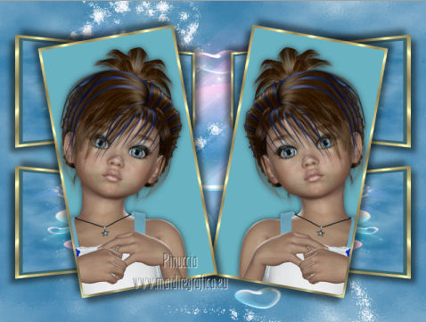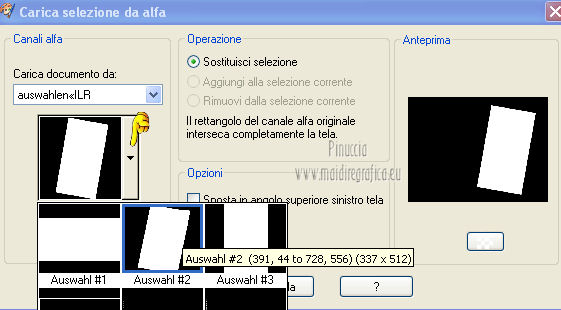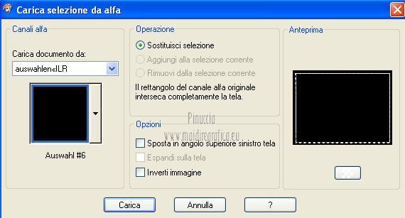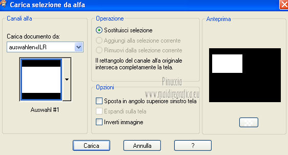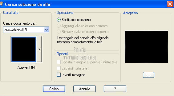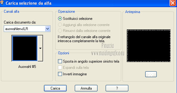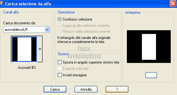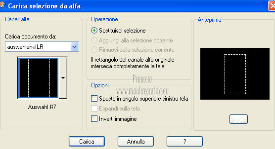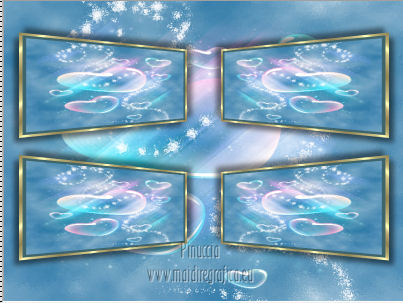 qui puoi trovare qualche risposta ai tuoi dubbi. Se l'argomento che ti interessa non è presente, ti prego di segnalarmelo. Questo tutorial è stato creato con PSP X5, ma può essere eseguito anche con le altre versioni di PSP. Per tradurlo, ho usato PSP X. Grazie ai creatori dei tubes che mettono a disposizione il loro lavoro in vari gruppi di condivisione. Rispetta il lavoro degli autori, non cambiare il nome del file e non cancellare il watermark. Occorrente: A scelta un'immagine di sfondo e due tubes. Il resto del materiale qui Per il materiale usato grazie Gerda Filtri: Mura's Seamless - Emboss at Alpha qui 1. Scegli due colori dal tuo tube. Imposta il colore di primo piano con il colore chiaro, e il colore di sfondo con il colore scuro. Apri "auswahlen_©ILR". Duplica l'immagine usando la combinazione di tasti maiuscola+D e chiudi l'originale. La copia sarà la base del tuo lavoro. L'immagine non è vuota, ma contiene le selezioni salvate sul canale alfa. Selezione>Seleziona tutto. Apri la tua immagine di sfondo e vai a Modifica>Copia. Torna al tuo lavoro e vai a Modifica>Incolla nella selezione. Selezione>Deseleziona. Se stai usando un tube, copialo e incollalo come nuovo livello. Aggiungi un nuovo livello e portalo sotto il livello del tube. Riempi questo livello con uno dei tuoi colori.Attiva nuovamente il livello superiore. Livelli>Nuovo livello raster. Selezione>Carica/Salva selezione>Carica selezione da disco. La selezione "auswahl#1" è subito disponibile. Devi soltanto cliccare Carica. ![]() Passa il colore di primo piano a Motivi e imposta un motivo oro a tua scelta. Riempi la selezione con il motivo oro.Selezione>Modifica>Contrai - 5 pixels. ![]() Riempi con il colore di sfondo.Selezione>Modifica>Contrai 5 pixels. Modifica>Incolla nella selezione (l'immagine di sfondo è ancora in memoria). Selezione>Deseleziona. Premi il tasto K per attivare lo strumento Puntatore ![]() se stai usando PSP 9 il tasto D (valido per tutte le versioni) per attivare lo strumento Deformazione ![]() in modalità Prospettiva, spingi verso l'interno il nodo superiore a destra ![]() Dovresti avere questo. ![]() Effetti>Effetti 3D>Sfalsa ombra. ![]() Ripeti l'Effetto Sfalsa ombra, invertendo i settaggi verticale e orizzontale. ![]() 3. Livelli>Duplica. Immagine>Rifletti. Livelli>Duplica. Sposta questo riquadro sotto il riquadro.Livelli>Duplica. Immagine>Rifletti. E avrai questo. ![]() Livelli>Nuovo livello raster. Selezione>Carica/Salva selezione>Carica selezione da canale alfa. Apri il menu delle selezioni e carica Auswahl#2. ![]() Riempi la selezione con il motivo oro.Selezione>Modifica>Contrai - 5 pixels. Riempi con il colore di primo piano.Selezione>Modifica>Contrai - 5 pixels. Apri il tuo primo tube e vai a Modifica>Copia. Torna al tuo lavoro e vai a Modifica>Incolla come nuovo livello. Immagine>Ridimensiona, se e quanto necessario. Posiziona il tube nell'area selezionata.![]() (per il mio esempio ho voluto usare soltanto la parte superiore del tube). Selezione>Inverti. Premi sulla tastiera il tasto CANC. Selezione>Deseleziona. 4. Regola>Messa a fuoco>Metti a fuoco. Effetti>Effetti 3D>Sfalsa ombra. ![]() Livelli>Unisci>Unisci giù. Effetti>Effetti 3D>Sfalsa ombra, con i settaggi precedenti. ![]() ![]() Livelli>Duplica. Immagine>Rifletti. Risultato. ![]() Livelli>Nuovo livello raster. Selezione>Carica/Salva selezione>Carica selezione da canale alfa. Apri il menu delle selezioni e carica Auswahl#3. ![]() Riempi la selezione con il colore di sfondo.Selezione>Modifica>Contrai - 5 pixels. Riempi con il colore di primo piano.Selezione>Modifica>Contrai - 5 pixels. Apri il tuo secondo tube e vai a Modifica>Copia. Torna al tuo lavoro e vai a Modifica>Incolla come nuovo livello. Immagine>Ridimensiona, se e quanto necessario. Posiziona il tube nell'area selezionata.Selezione>Inverti. Premi sulla tastiera il tasto CANC. Selezione>Deseleziona. Regola>Messa a fuoco>Metti a fuoco. Effetti>Effetti 3D>Sfalsa ombra. ![]() Livelli>Unisci>Unisci giù. Livelli>Nuovo livello raster. Selezione>Carica/Salva selezione>Carica selezione da canale alfa. Apri il menu delle selezioni e carica Auswahl#7. ![]() Riempi la selezione con il motivo oro.Selezione>Deseleziona. Effetti>Plugins>Mura's Seamless - Emboss at Alpha. ![]() Effetti>Effetti 3D>Sfalsa ombra, con i settaggi precedenti. Livelli>Nuovo livello raster. Selezione>Carica/Salva selezione>Carica selezione da canale alfa. Apri il menu delle selezioni e carica Auswahl#4. ![]() Selezione>Deseleziona. Livelli>Nuovo livello raster. Selezione>Carica/Salva selezione>Carica selezione da canale alfa. Apri il menu delle selezioni e carica Auswahl#5. ![]() Riempi la selezione con il motivo oro.Selezione>Deseleziona. Effetti>Plugins>Mura's Seamless - Emboss at Alpha, con i settaggi precedenti. 6. Livelli>Nuovo livello raster. Selezione>Carica/Salva selezione>Carica selezione da canale alfa. Apri il menu delle selezioni e carica Auswahl#6. ![]() Riempi la selezione con il motivo oro.Selezione>Deseleziona. Effetti>Plugins>Mura's Seamless - Emboss at Alpha con i settaggi precedenti. Scrivi un tuo testo o usa il file di testo fornito con il materiale. Aggiungi il tuo nome e/o il tuo watermark su un nuovo livello, senza dimenticare i copyright delle immagini usate. Livelli>Unisci>Unisci tutto e salva in formato jpg. ![]() Se hai problemi o dubbi, o trovi un link non funzionante, o anche soltanto per un saluto, scrivimi. 3 Ottobre 2012 |