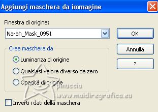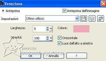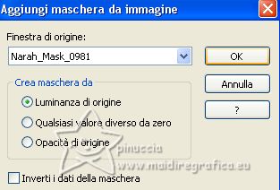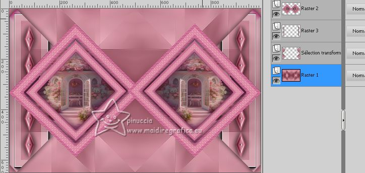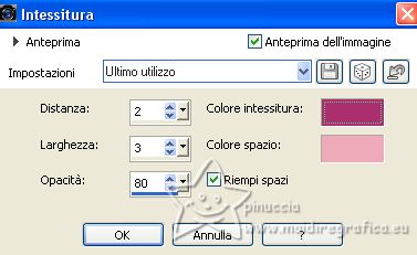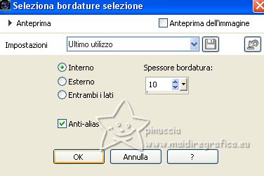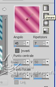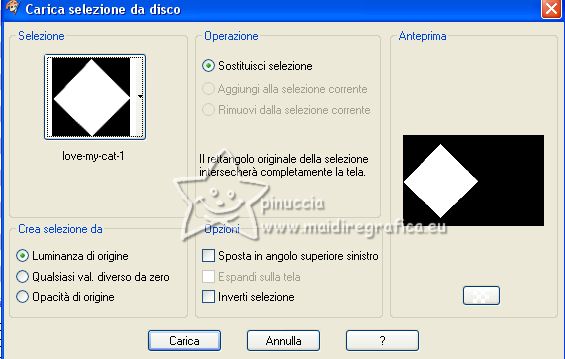 qui puoi trovare qualche risposta ai tuoi dubbi. Se l'argomento che ti interessa non è presente, ti prego di segnalarmelo. Questo tutorial è stato realizzato con PSPX3 e tradotto con PSPX7, ma può essere realizzato anche con le altre versioni di PSP. Dalla versione X4, il comando Immagine>Rifletti è stato sostituito con Immagine>Capovolgi in orizzontale, e il comando Immagine>Capovolgi con Immagine>Capovolgi in verticale. Nelle versioni X5 e X6, le funzioni sono state migliorate rendendo disponibile il menu Oggetti. Con la nuova versione X7, sono tornati Rifletti>Capovolgi, ma con nuove varianti. Vedi la scheda sull'argomento qui Grazie ai creatori dei tubes che mettono a disposizione il loro lavoro in vari gruppi di condivisione. Rispetta il lavoro degli autori, non cambiare il nome del file e non cancellare il watermark. traduzione francese qui traduzione inglese qui Le vostre versioni qui![]() Occorrente: Tubes a scelta (il tube usato dall'autore è sotto licenza). Il resto del materiale qui Per il tube del mio esempio grazie Beatriz. (in questa pagina trovi i links ai siti dei creatori di tubes) Filtri: in caso di dubbi, ricorda di consultare la mia sezione filtri qui Filters Unlimited 2.0 qui Mehdi - Sorting Tiles qui Simple - Blintz, Top Left Mirror qui AFS IMPORT - sqborder2 qui Alien Skin Eye Candy 5 Impact - Glass qui Mura's Meister - Perspective Tiling qui Mura's Seamless - Emboss at Alpha qui AAA Frames - Foto Frame qui Alien Skin Xenofex 2 - Constellation qui I filtri Mura's Seamless, AFS IMPORT e Simple si possono usare da soli o importati in Filters Unlimited (come fare vedi qui) Se un filtro fornito appare con questa icona ![]() ![]() non esitare a cambiare modalità di miscelatura e opacità secondo i colori utilizzati. Nelle ultime versioni di PSP non c'é il gradiente di primo piano/sfondo (Corel_06_029) Puoi usare i gradienti delle versioni precedenti. Trovi qui i gradienti Corel X. ![]() Metti le selezioni nella cartella Selezioni. Apri le maschere in PSP e minimizzale con il resto del materiale. 1. Scegli due colori dal tuo tube. Imposta il colore di primo piano con il colore chiaro, e il colore di sfondo con il colore scuro. ![]() Apri una nuova immagine trasparente 1000 x 650 pixels, e riempila con il colore chiaro.Livelli>Nuovo livello raster. Selezione>Seleziona tutto. Apri l'immagine di sfondo 66e6782076d649... ![]() Modifica>Copia. Torna al tuo lavoro e vai a Modifica>Incolla nella selezione. Selezione>Deseleziona. Cambia la modalità di miscelatura di questo livello in Luminanza (esistente). Livelli>Unisci>Unisci giù. Effetti>Effetti di immagine>Motivo unico, con i settaggi standard. ![]() 2. Regola>Sfocatura>Sfocatura gaussiana - raggio 30. ![]() Effetti>Plugins>Mehdi - Sorting Tiles. ![]() Effetti>Effetti di riflesso>Specchio rotante. ![]() Effetti>Plugins>Simple - Blintz. Modifica>Ripeti Blintz. Effetti>Plugins>Simple - Top Left Mirror. ![]() Effetti>Effetti di bordo>Aumenta. 3. Effetti>Effetti di immagine>Motivo unico, Fianco a fianco. ![]() Selezione>Carica/Salva selezione>Carica selezione da disco. Cerca e carica la selezione love-my-cat-1 ![]() Livelli>Nuovo livello raster. Riempi la selezione con il colore chiaro.Effetti>Effetti di trama>Intessitura colore intessitura: colore scuro colore spazio: colore chiaro. ![]() Selezione>Modifica>Seleziona bordature selezione. ![]() 4. Livelli>Nuovo livello raster. Riempi il livello con il colore scuro.Effetti>Effetti di trama>Veneziana - colore chiaro ![]() Selezione>Deseleziona. Attiva lo strumento Bacchetta magica ![]() e clicca nella cornice per selezionarla. Selezione>Modifica>Contrai - 20 pixels. Selezione>Modifica>Seleziona bordature selezione, con i settaggi precedenti. Riempi con il colore scuro.Effetti>Effetti di trama>Veneziana, con i settaggi precedenti. Selezione>Deseleziona. 5. Clicca nella cornice con la bacchetta magica per selezionarla.![]() Livelli>Nuovo livello raster. Livelli>Disponi>Sposta giù. Modifica>Incolla nella selezione (la tua immagine di sfondo è sempre in memoria). Livelli>Nuovo livello raster. Effetti>Effetti 3D>Ritaglio, colore scuro. ![]() Effetti>Plugins>Alien Skin Eye Candy 5 Impact - Glass. Glass Color: colore scuro ![]() Selezione>Deseleziona. 6. Livelli>Disponi>Porta sposta su. Effetti>Effetti 3D>Sfalsa ombra. ![]() ![]() Livelli>Unisci>Unisci giù - 3 volte. Livelli>Duplica. Immagine>Rifletti. Livelli>Duplica. Immagine>Ridimensiona, al 75%, tutti i livelli non selezionato. Tasto K per attivare lo strumento Puntatore ![]() e imposta Posizione X: 535,00 e Posizione Y: 125,00. ![]() ![]() 7. Livelli>Duplica. Immagine>Rifletti. Livelli>Unisci>Unisci giù - 3 volte. Attiva il livello Raster 1. ![]() Selezione>Carica/Salva selezione>Carica selezione da disco. Cerca e carica la selezione love-my-cat-2 ![]() Selezione>Innalza selezione a livello. Effetti>Plugins>[AFS IMPORT] - sqborder2, con i settaggi standard. ![]() 8. Effetti>Plugins>AAA Frames - Foto Frame. ![]() Selezione>Deseleziona. Effetti>Effetti 3D>Sfalsa ombra. ![]() Livelli>Duplica. Immagine>Rifletti. Livelli>Unisci>Unisci giù. Apri deko ![]() Modifica>Copia. Torna al tuo lavoro e vai a Modifica>Incolla come nuovo livello. Colorizza, se stai usando altri colori. Tasto K per attivare lo strumento Puntatore ![]() e imposta Posizione X: 40,00 e Posizione Y: 55,00. ![]() Livelli>Duplica. Immagine>Rifletti. Livelli>Unisci>Unisci giù. Effetti>Effetti 3D>Sfalsa ombra, con i settaggi precedenti. Attiva nuovamente il livello Raster 1. ![]() Livelli>Nuovo livello raster. Riempi il livello con il colore scuro.9. Livelli>Nuovo livello maschera>Da immagine. Apri il menu sotto la finestra di origine e vedrai la lista dei files aperti. Seleziona la maschera Narah_mask_0569 ![]() Livelli>Unisci>Unisci gruppo. Livelli>Duplica. Immagine>Rifletti. Livelli>Unisci>Unisci giù. Effetti>Effetti di immagine>Motivo unico, con i settaggi standard. ![]() Effetti>Plugins>Mura's Seamless - Emboss at Alpha, con i settaggi standard. ![]() Li