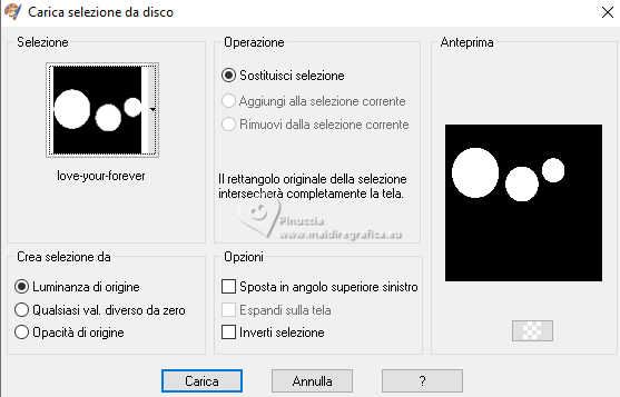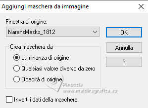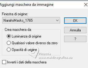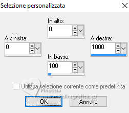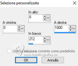 qui puoi trovare qualche risposta ai tuoi dubbi. Se l'argomento che ti interessa non è presente, ti prego di segnalarmelo. Questo tutorial è stato realizzato con PSP2019 e tradotto con PSPX9 e PSP2020, ma può essere realizzato anche con le altre versioni di PSP. Dalla versione X4, il comando Immagine>Rifletti è stato sostituito con Immagine>Capovolgi in orizzontale, e il comando Immagine>Capovolgi con Immagine>Capovolgi in verticale. Nelle versioni X5 e X6, le funzioni sono state migliorate rendendo disponibile il menu Oggetti. Con la nuova versione X7, sono tornati Rifletti>Capovolgi, ma con nuove varianti. Vedi la scheda sull'argomento qui Grazie ai creatori dei tubes che mettono a disposizione il loro lavoro in vari gruppi di condivisione. Rispetta il lavoro degli autori, non cambiare il nome del file e non cancellare il watermark. traduzione francese qui traduzione inglese qui Le vostre versioni qui![]() Occorrente: Un tube a scelta (il tube usato da Inge-Lore è un tube esclusivo di Kamil) Il resto del materiale ![]() Grazie per i tubes Adrienne, Kamil e Irene, e per le maschere Narah. Per il tube del mio esempio grazie Renée (in questa pagina trovi i links ai siti dei creatori di tubes) ![]() in caso di dubbi, ricorda di consultare la mia sezione filtri qui Filters Unlimited 2.0 qui VM Toolbox - Instant Tile qui Alien Skin Eye Candy 5 Impact - Glass qui Mehdi - Sorting Tiles qui Mura's Meister - Perspective Tiling qui I filtri VM Toolbox si possono usare da soli o importati in Filters Unlimited (come fare vedi qui) Se un filtro fornito appare con questa icona ![]() non esitare a cambiare modalità di miscelatura e opacità secondo i colori utilizzati. ![]() Metti la selezione nella cartella Selezioni. Apri le maschere in PSP e minimizzale con il resto del materiale. 1. Scegli un colore chiaro e un colore scuro dai tuoi tubes. I miei colori: colore bianco #ffffff colore scuro #821a25 ![]() Apri una nuova immagine trasparente 1000 x 650 pixels. Selezione>Seleziona tutto. Apri l'immagine di sfondo KamilTube-1693-BG ![]() Modifica>Copia. Torna al tuo lavoro e vai a Modifica>Incolla nella selezione. Selezione>Deseleziona. Effetti>Effetti di immagine>Motivo unico, con i settaggi standard. ![]() Regola>Sfocatura>Sfocatura gaussiana - raggio 20. ![]() 2. Effetti>Plugins>Mehdi - Sorting Tiles. ![]() Effetti>Plugins>VM Toolbox - Instant Tile, con i settaggi standard. ![]() Livelli>Nuovo livello raster. Riempi il livello con il colore bianco.Livelli>Nuovo livello maschera>Da immagine. Apri il menu sotto la finestra di origine e vedrai la lista dei files aperti. Seleziona la maschera NarahsMasks_1812 ![]() Effetti>Effetti di bordo>Aumenta. Livelli>Unisci>Unisci gruppo. 3. Attiva lo strumento Selezione ![]() (non importa il tipo di selezione impostato, perché con la selezione personalizzata si ottiene sempre un rettangolo) clicca sull'icona Selezione personalizzata ![]() e imposta i seguenti settaggi. ![]() Modifica>Taglia (per tenere in memoria l'immagine tagliata). Livelli>Nuovo livello raster. Selezione personalizzata ![]() ![]() Modifica>Incolla nella selezione. Selezione>Deseleziona. Livelli>Duplica. Immagine>Rifletti>Rifletti verticalmente (Immagine>Capovolgi). Livelli>Unisci>Unisci giù. Regola>Messa a fuoco>Accentua messa a fuoco. 4. Attiva il livello della maschera. Tasto K per attivare lo strumento Puntatore ![]() e imposta Posizione X: 8,00 e Posizione Y: 114,00. ![]() Selezione>Carica/Salva selezione>Carica selezione da disco. Cerca e carica la selezione love-your-forever ![]() Apri il tube di sfondo My Sweet Valentine Paper (2) ![]() Modifica>Copia. Torna al tuo lavoro e vai a Modifica>Incolla come nuovo livello. Livelli>Disponi>Sposta giù (sotto il livello della maschera) Se necessario, ridimensiona, e posiziona il tube sulla selezione a tuo piacimento.Selezione>Inverti. Premi sulla tastiera il tasto CANC ![]() Selezione>Inverti. 5. Livelli>Nuovo livello raster. Effetti>Effetti 3D>Ritaglio. ![]() Attiva il livello della maschera. Selezione>Modifica>Contrai - 5 pixels. Effetti>Plugins>Alien Skin Eye Candy 5 Impact - Glass. Seleziona il preset Clear con i seguenti settaggi. ![]() Selezione>Deseleziona. 6. Attiva il livello Raster 1. Apri deco-1 ![]() Modifica>Copia. Torna al tuo lavoro e vai a Modifica>Incolla come nuovo livello. Cambia la modalità di miscelatura di questo livello in Luce diffusa. Attiva il livello superiore. Apri deco 2 ![]() Modifica>Copia. Torna al tuo lavoro e vai a Modifica>Incolla come nuovo livello. Tasto K per attivare lo strumento Puntatore ![]() e imposta Posizione X: 397,00 e Posizione Y: 93,00. ![]() Effetti>Effetti 3>Sfalsa ombra, colore nero. ![]() 7. Modifica>Copia Speciale>Copia Unione. Modifica>Incolla come nuovo livello. Effetti>Plugins>Mura's Meister - Perspective Tiling. ![]() Mantieni Posizione X: 0,00 e imposta Posizione Y: 549,00. ![]() Effetti>Effetti di riflesso>Specchio rotante. ![]() Effetti>Effetti 3D>Sfalsa ombra, colore nero. ![]() ![]() 8. Immagine>Aggiungi bordatura, 2 pixels, simmetriche, colore chiaro. Immagine>Aggiungi bordatura, 5 pixels, simmetriche, colore scuro. Immagine>Aggiungi bordatura, 2 pixels, simmetriche, colore chiaro. Selezione>Seleziona tutto. Modifica>Copia Immagine>Aggiungi bordatura, 40 pixels, simmetriche, colore scuro. Selezione>Inverti. Modifica>Incolla nella selezione 9. Regola>Sfocatura>Sfocatura gaussiana - raggio 30. ![]() Livelli>Nuovo livello raster. Riempi il livello con il colore bianco.Livelli>Nuovo livello maschera>Da immagine. Apri il menu sotto la finestra di origine e seleziona la maschera NarahsMasks_1765 ![]() Effetti>Effetti di bordo>Aumenta. Livelli>Unisci>Unisci gruppo. Selezione>Inverti. Effetti>Effetti 3D>Sfalsa ombra, colore nero. ![]() Selezione>Deseleziona. Effetti>Effetti 3D>Sfalsa ombra, colore nero. ![]() 10. Apri il tube principale e vai a Modifica>Copia. Torna al tuo lavoro e vai a Modifica>Incolla come nuovo livello. Immagine>Ridimensiona, se necessario, tutti i livelli non 